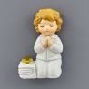 Scopri l'icona prima comunione con albero della vita in legno e resina, un dono speciale che celebra il sacramento della comunione. Questa bomboniera economica presenta una doppia base in legno, con la parte posteriore grigia e, sulla parte superiore a destra, un'icona in resina bianca che raffigura un bambino in preghiera circondato da simboli della...