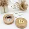 Angioletto in gesso bianco posizionato su una mini struttura in legno a forma di albero della vita a forma di cuore in tonalità naturale. Dimensioni: 6 x 2.1 x 7 cm circa. Perfetti per bomboniere battesimo originali, segnaposto battesimo, segnaposto comunione o come bomboniere comunione economiche.