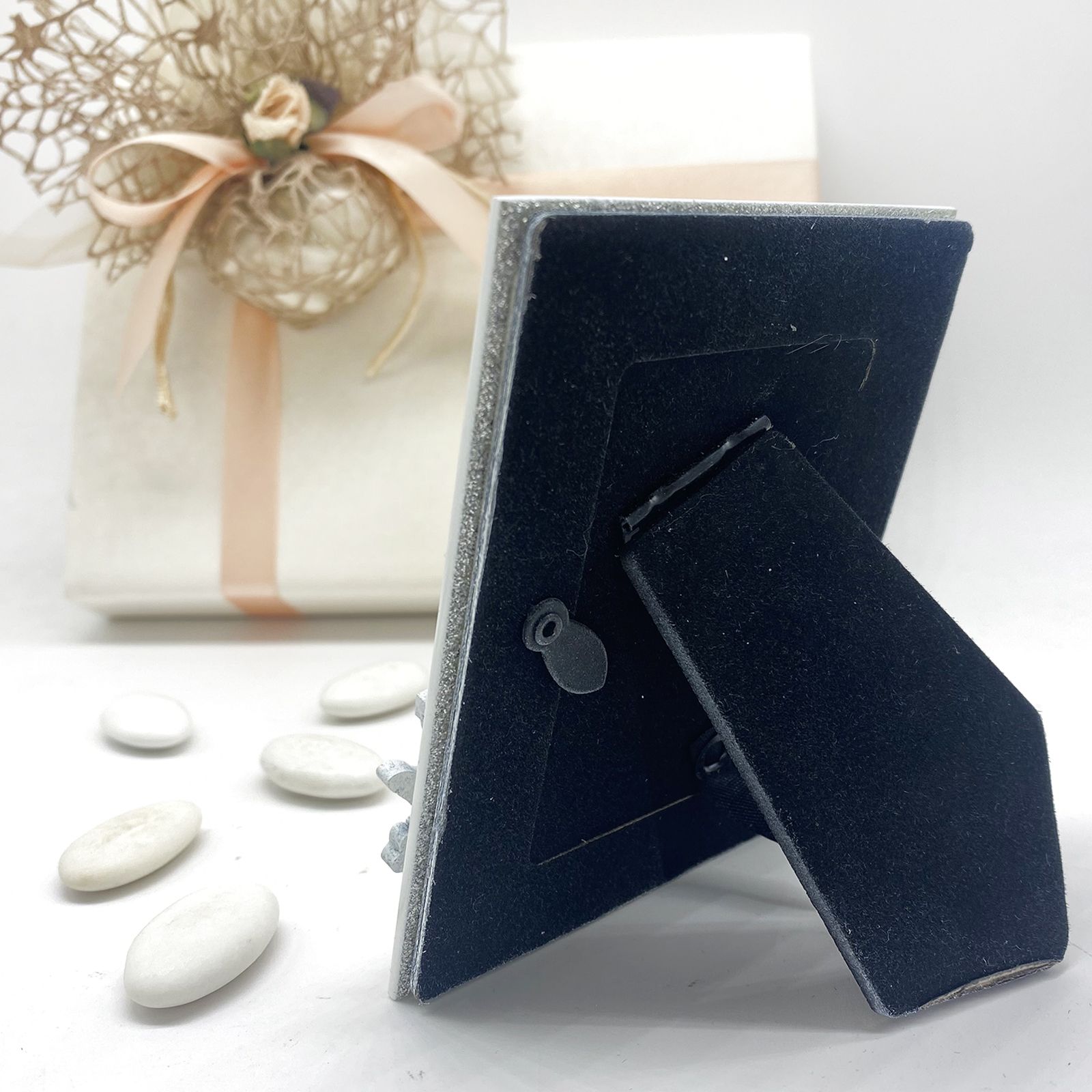 Dimensioni cornice: 11,5 x 9 cm circa (spazio per foto 4,5 x 6,5 cm circa).