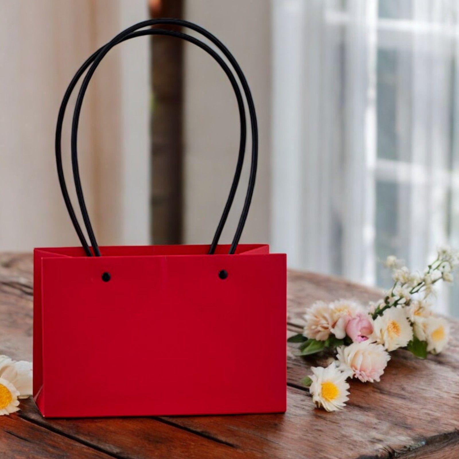 In occasione di eventi speciali, sorprendi i tuoi ospiti con una confezione unica e originale. La busta rettangolare waterproof con manici è l'accessorio ideale per confezionare le tue bomboniere fai da te. Realizzata in un elegante colore rosso, con dimensioni di 22x13x10 cm, è perfetta per contenere dolci, confetti o piccoli regali da offrire ai tuoi invitati.