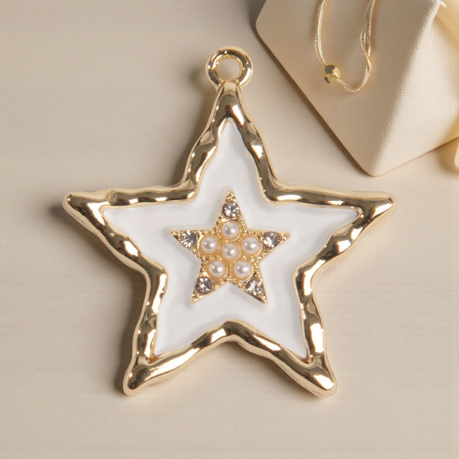 Realizzato in zama, questo ciondolo è disponibile in una raffinata combinazione di bianco e oro, perfetta per ogni tipo di evento. Utilizzalo come decorazione bomboniera, segnaposto nozze o chiudipacco, donando un tocco di eleganza e stile. La sua versatilità lo rende un accessorio impeccabile per ogni occasione, da un compleanno ai festeggiamenti dei 18 anni.