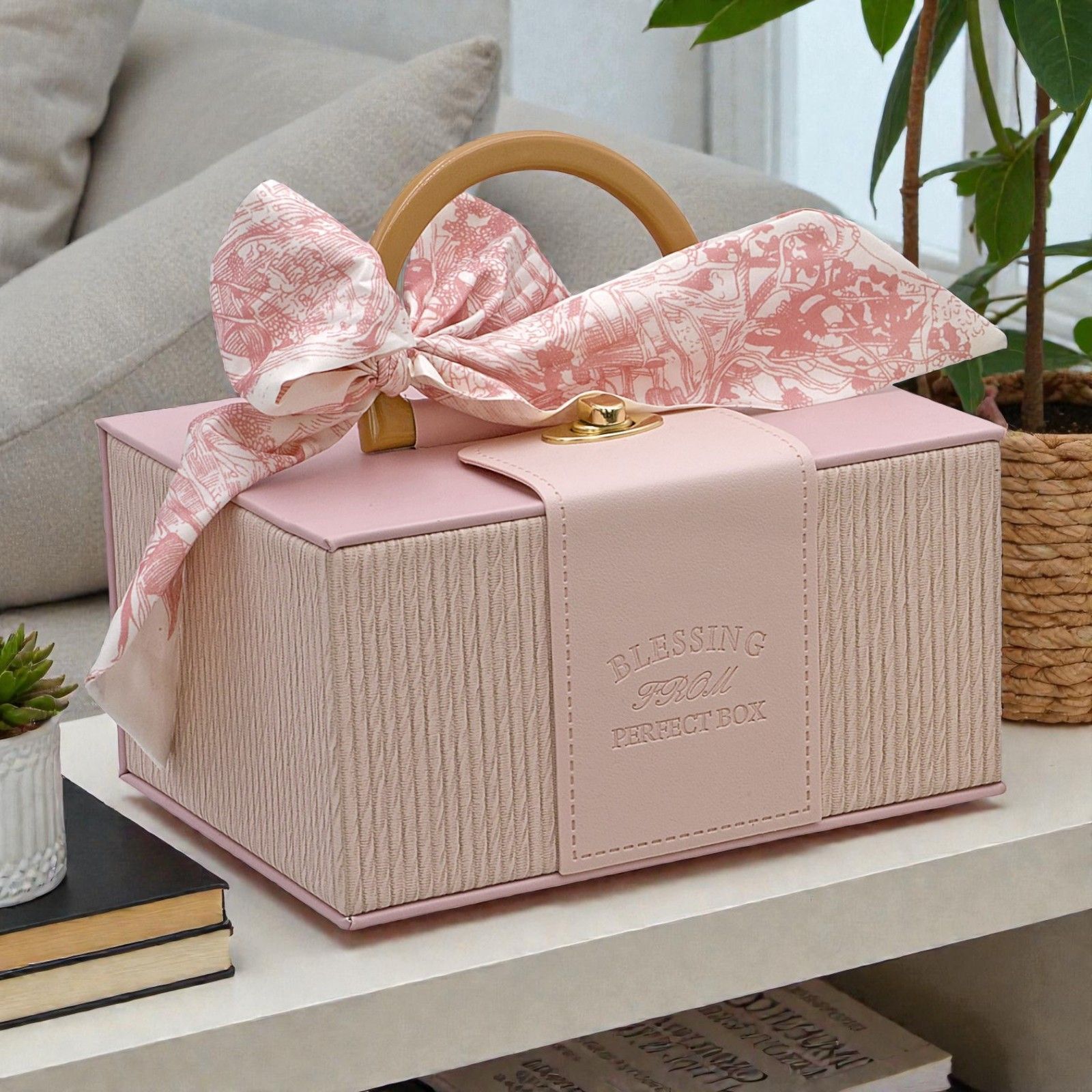 Realizzata in un elegante colore rosa, questa bomboniera originale è perfetta per ogni occasione. Il suo design raffinato, unito al manico in bamboo, la rende non solo esteticamente gradevole ma anche pratica da portare. Ogni scatola è pensata per contenere dolci pensieri e preziosi ricordi, trasformando ogni regalo in un gesto d'affetto.