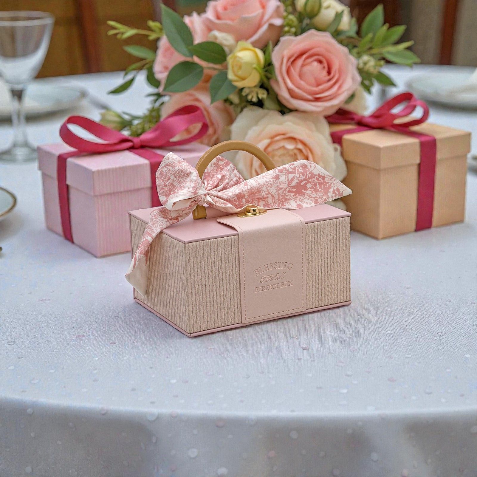 Entra in un mondo di emozioni con la nostra scatola in cartone con manico e foulard, una scelta perfetta per rendere il tuo evento ancora più speciale. Questa bomboniera non è solo un contenitore, ma un modo unico per esprimere i tuoi sentimenti e lasciare un ricordo indimenticabile nei cuori dei tuoi ospiti. Che si tratti di un compleanno, una comunione o un diciottesimo, ogni dettaglio racconta una storia di amore e gioia.