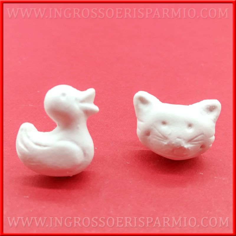 Gessetti profumati al muschio bianco assortiti in due varianti gattino e paperella, di piccole dimensioni, da utilizzare come gessi decorativi per bomboniere fai da te, come scatoline, sacchetti portaconfetti, ecc...
