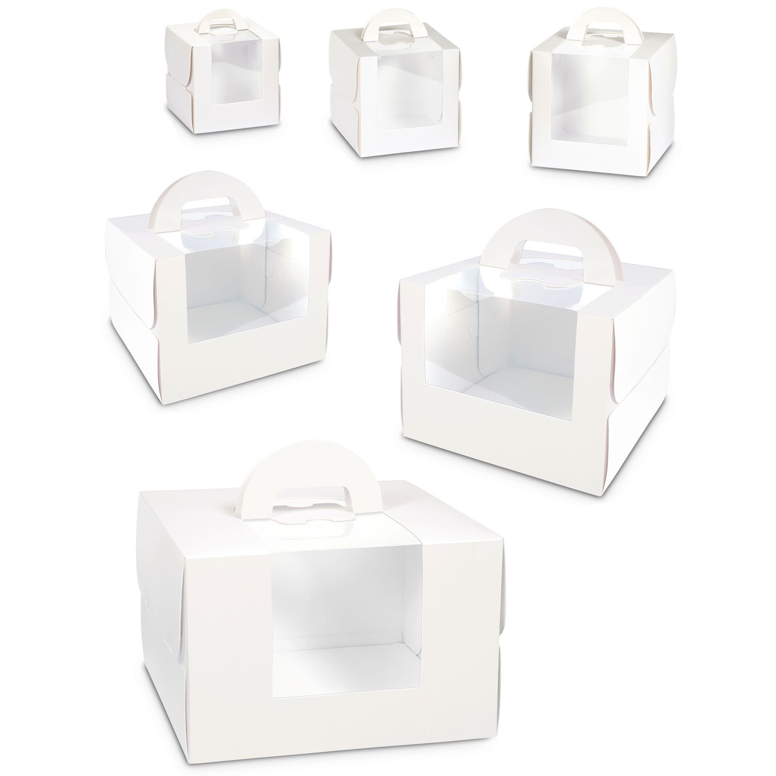 Realizzata in pvc e cartoncino, questa scatola è disponibile in diverse misure per adattarsi alle esigenze di confezionamento: Misura 1 (8x8x8 cm), Misura 2 (10x10x10 cm), Misura 3 (12x12x12 cm), Misura 4 (16x16x12,5 cm), Misura 5 (21x21x17 cm) e Misura 6 (26x26x17 cm circa).