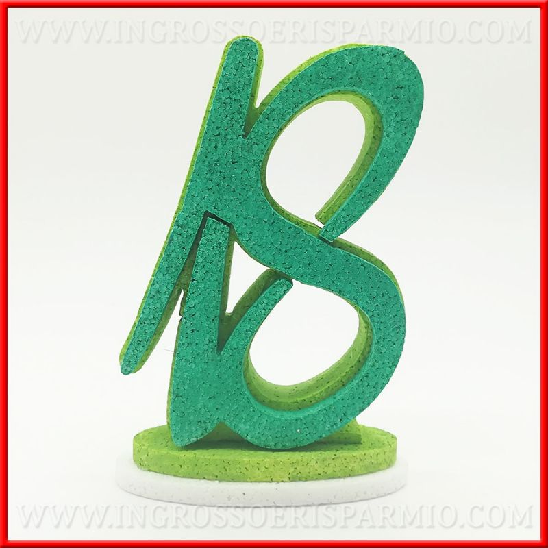 Il numero 18 tridimensionale è composto da uno strato di polistirolo colorato verde scuro sovrapposto ad uno strato di polistirolo verde chiaro.