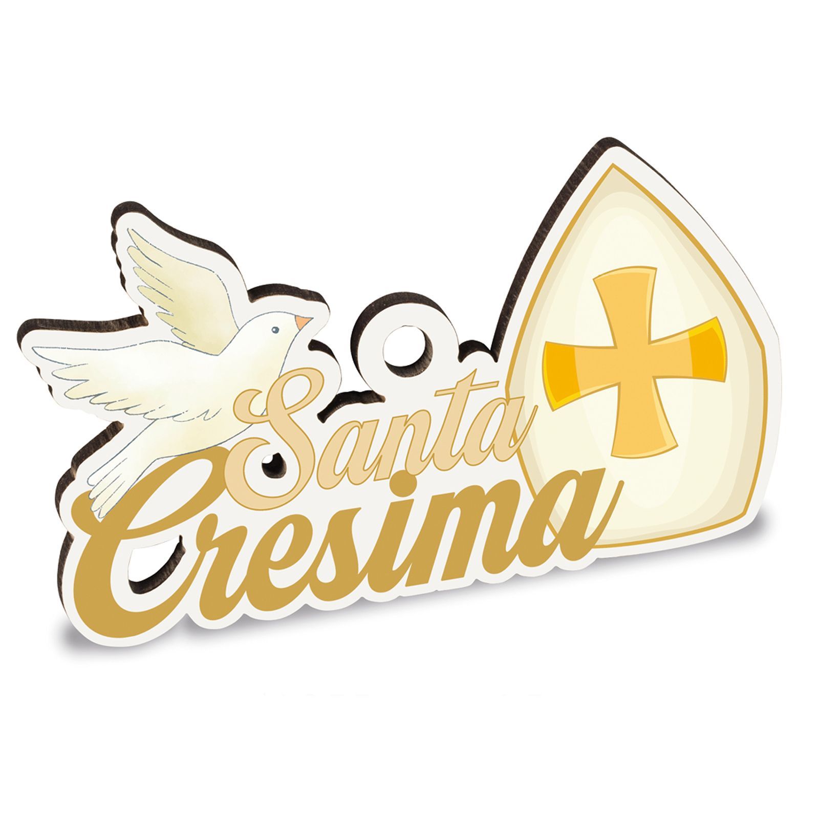 Questa decorazione con scritta Santa Cresima è perfetta per celebrare questo importante sacramento. Realizzata in legno e dipinta con colori pastello, misura circa cm.6,5 ed è ideale per essere appesa come ricordo di questo giorno speciale.