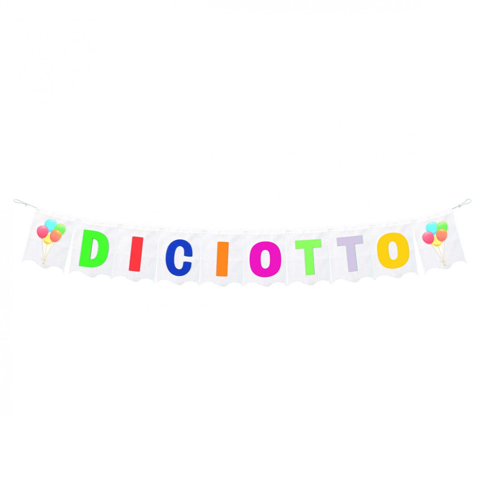Per festeggiare il diciottesimo compleanno di un ragazzo o di una ragazza, regala loro questo bellissimo festone in tessuto con scritta Diciotto. Realizzato con materiali di alta qualità, questo festone colorato e vivace sarà sicuramente apprezzato dagli invitati alla cerimonia.