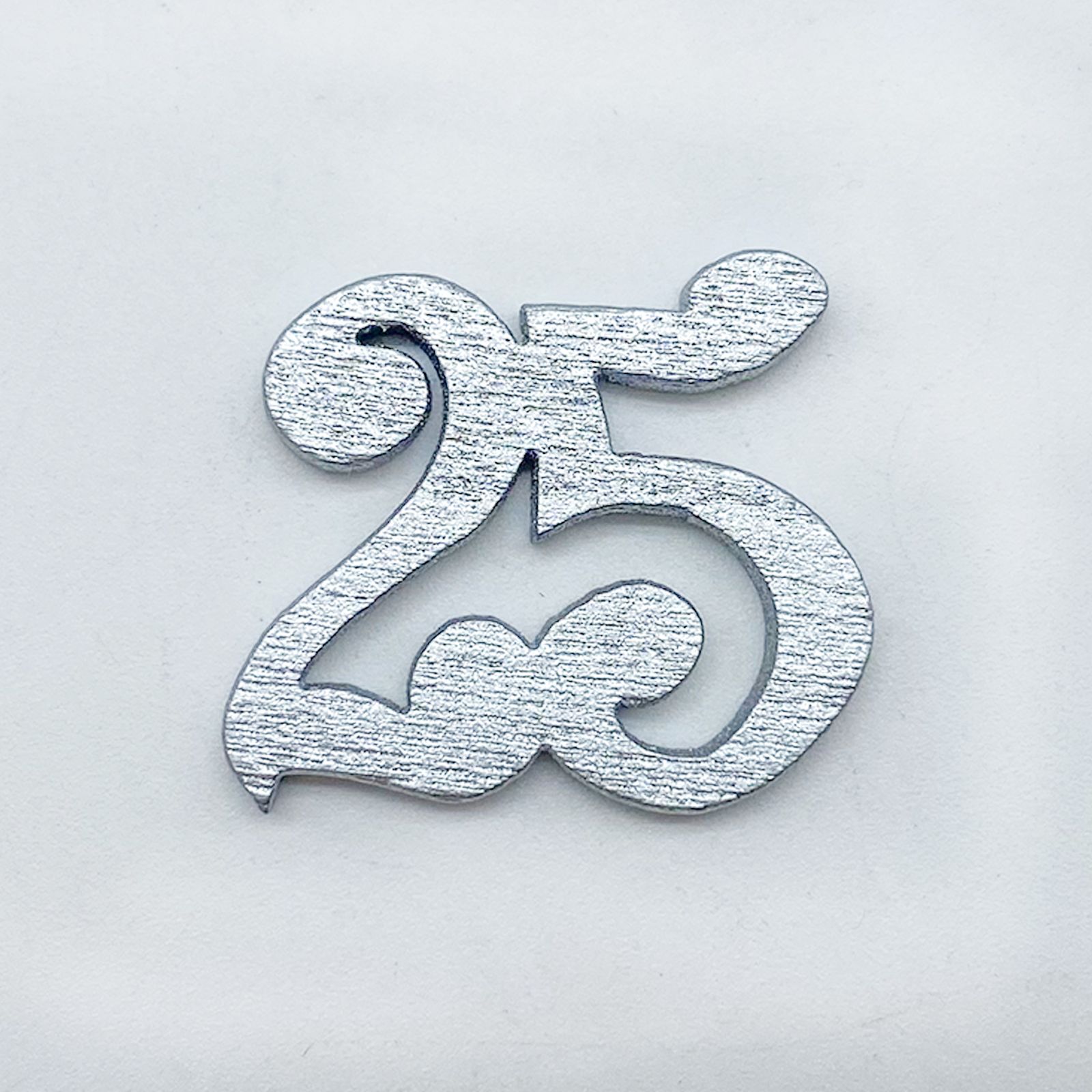 Idee bomboniere anniversario composte da barattoli portaconfetti con tappo in sughero decorati sulla parte frontale del vetro da un'applicazione in legno a forma di numero 25, in colore grigio/argento.