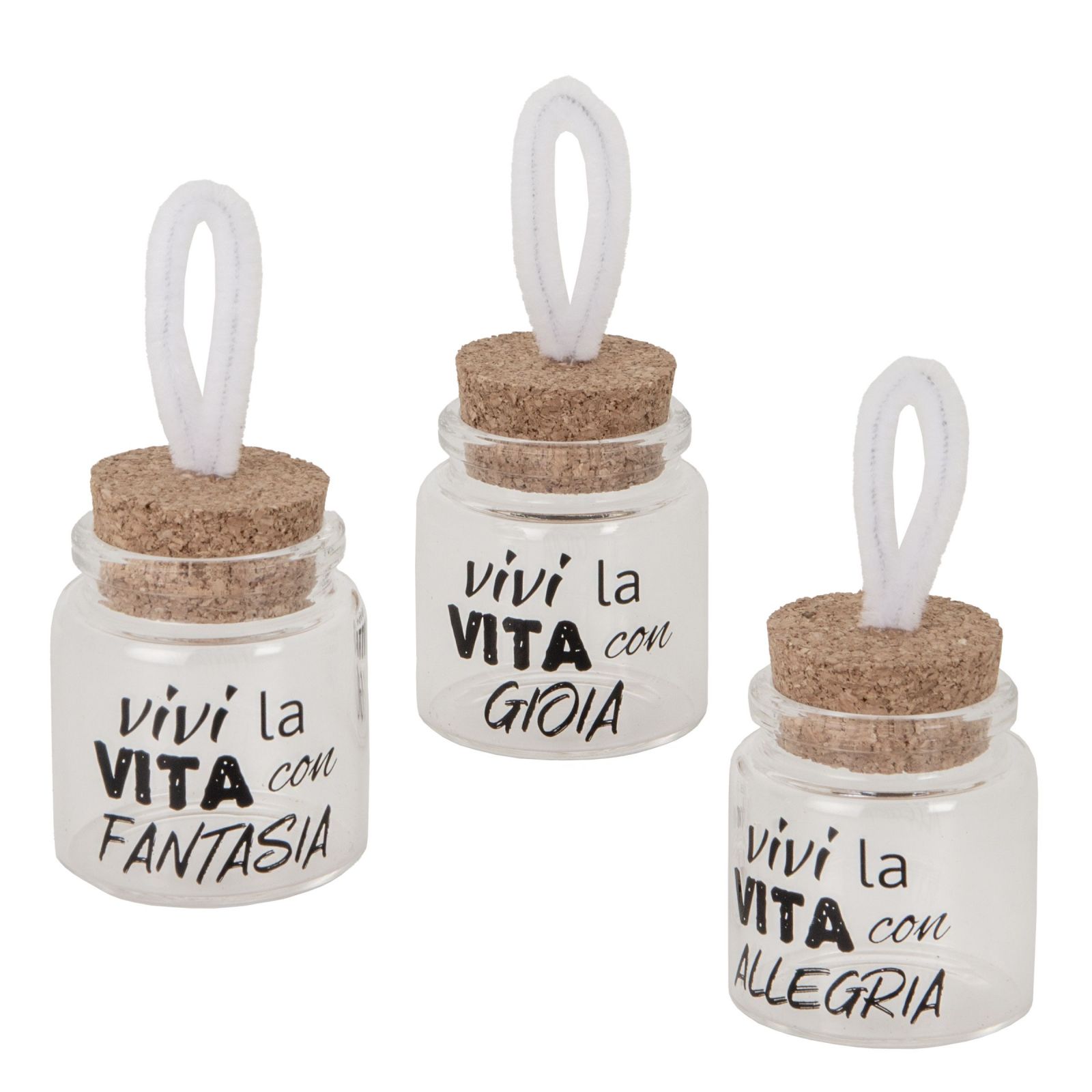 Realizzati in vetro di alta qualità e con un tappo in sughero che conferisce loro un tocco rustico ed elegante, i vasetti hanno una dimensione di circa 6 cm e sono impreziositi da un appendino bianco che aggiunge un tocco di charme. La scritta nera, poi, aggiunge un tocco di eleganza che renderà ancora più speciale il tuo regalo.