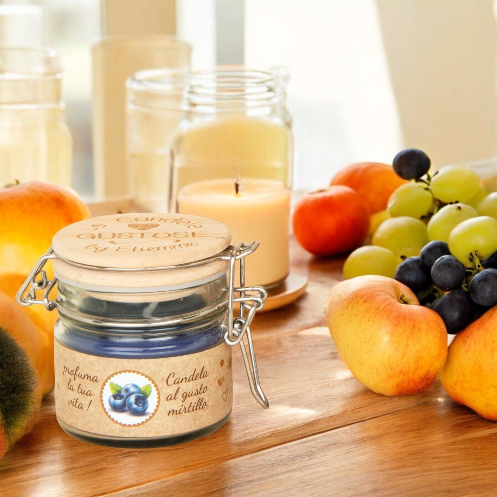 Un'idea originale e particolare per ringraziare i tuoi invitati è il barattolino con chiusura ermetica con scritta sul tappo Le candele Gustose. All'interno troverai una candela dal delicato aroma di mirtillo, perfetta per creare un'atmosfera rilassante e profumata.