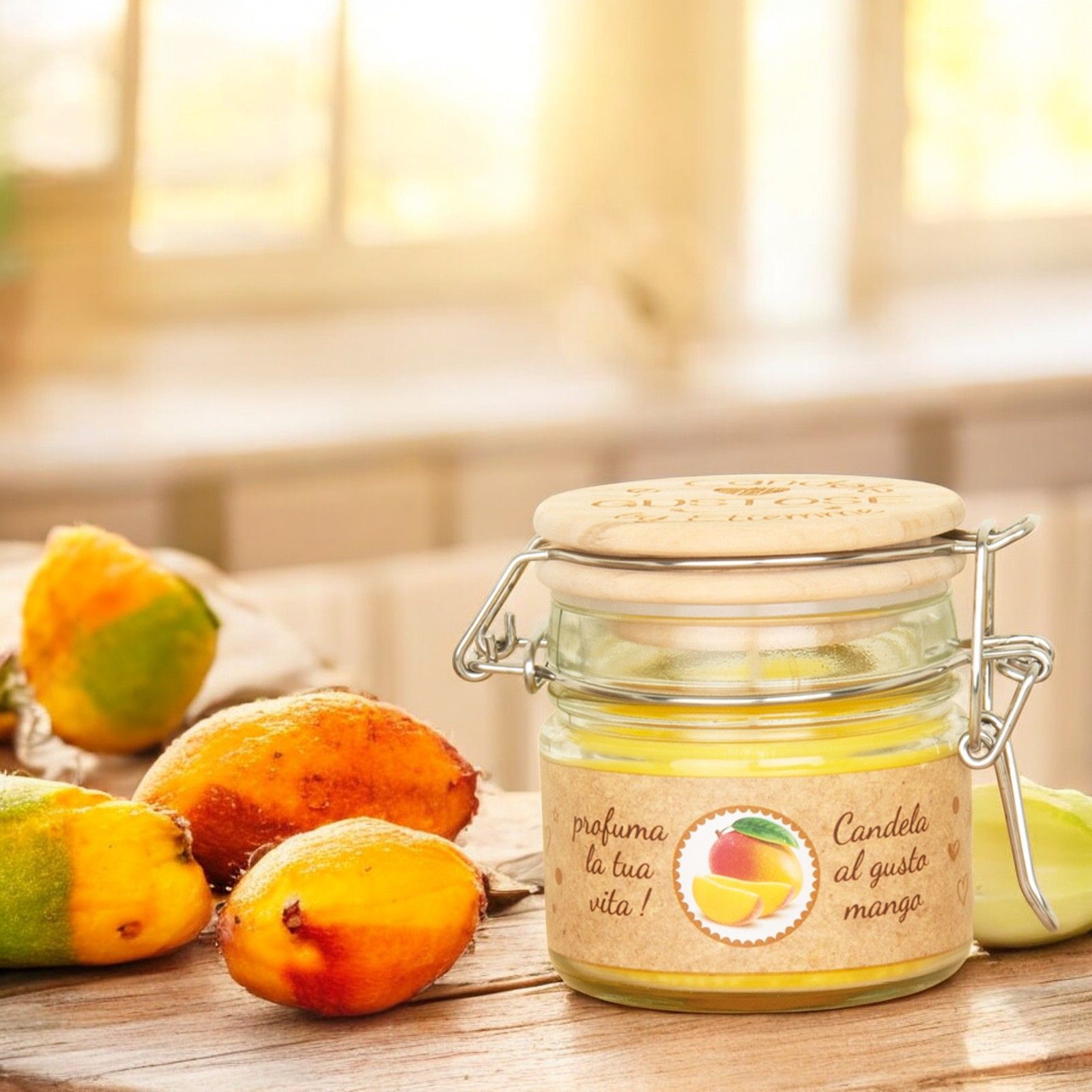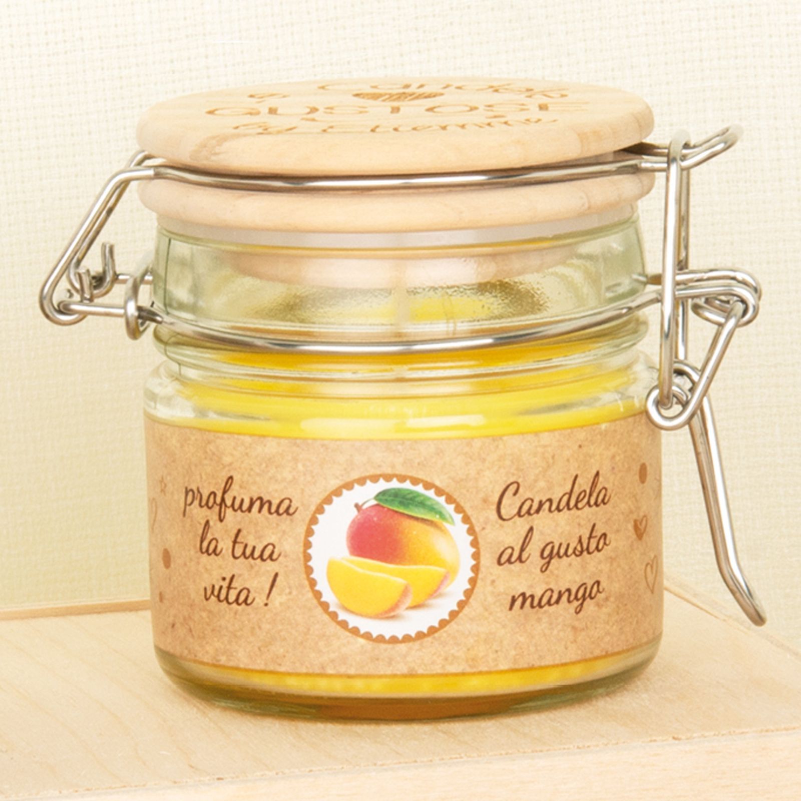 Il Barattolino con chiusura ermetica Le candele Gustose è un'idea originale e particolare per regalare agli invitati alla tua cerimonia un pensierino unico. Realizzato in legno e vetro, questo barattolino ha dimensioni di circa h.7,5 cm e contiene una candela al gusto mango che renderà l'ambiente profumato e accogliente.