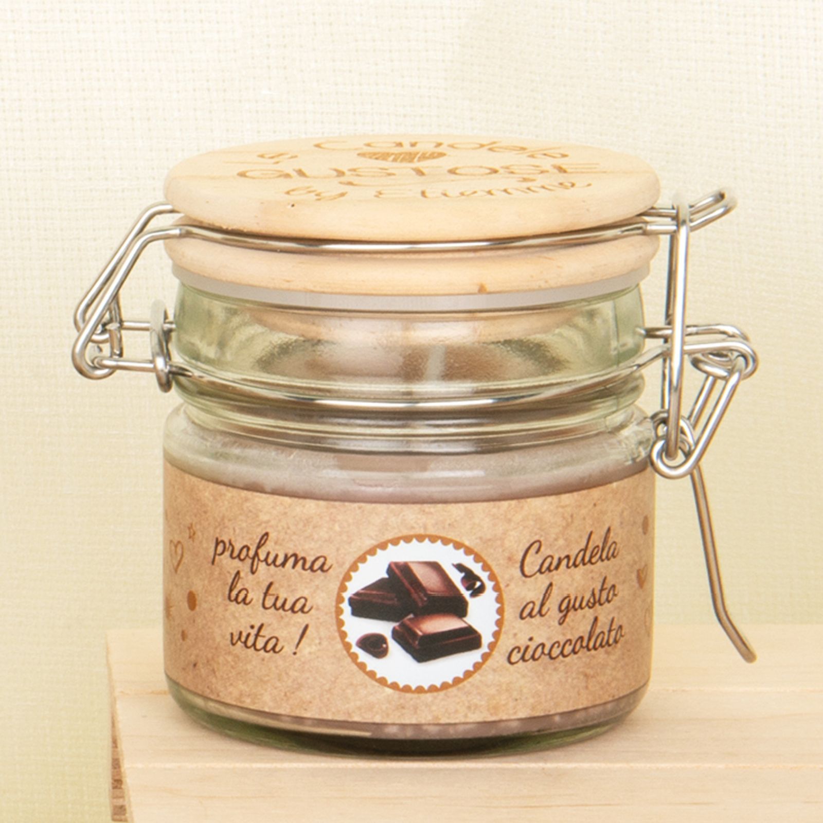 Con il nostro barattolino con chiusura ermetica con la scritta "Le candele Gustose", potrai regalare agli invitati alla tua cerimonia un prodotto originale e particolare. All'interno del barattolino troverai una deliziosa candela al gusto cioccolato, ideale per creare un'atmosfera calda e accogliente.