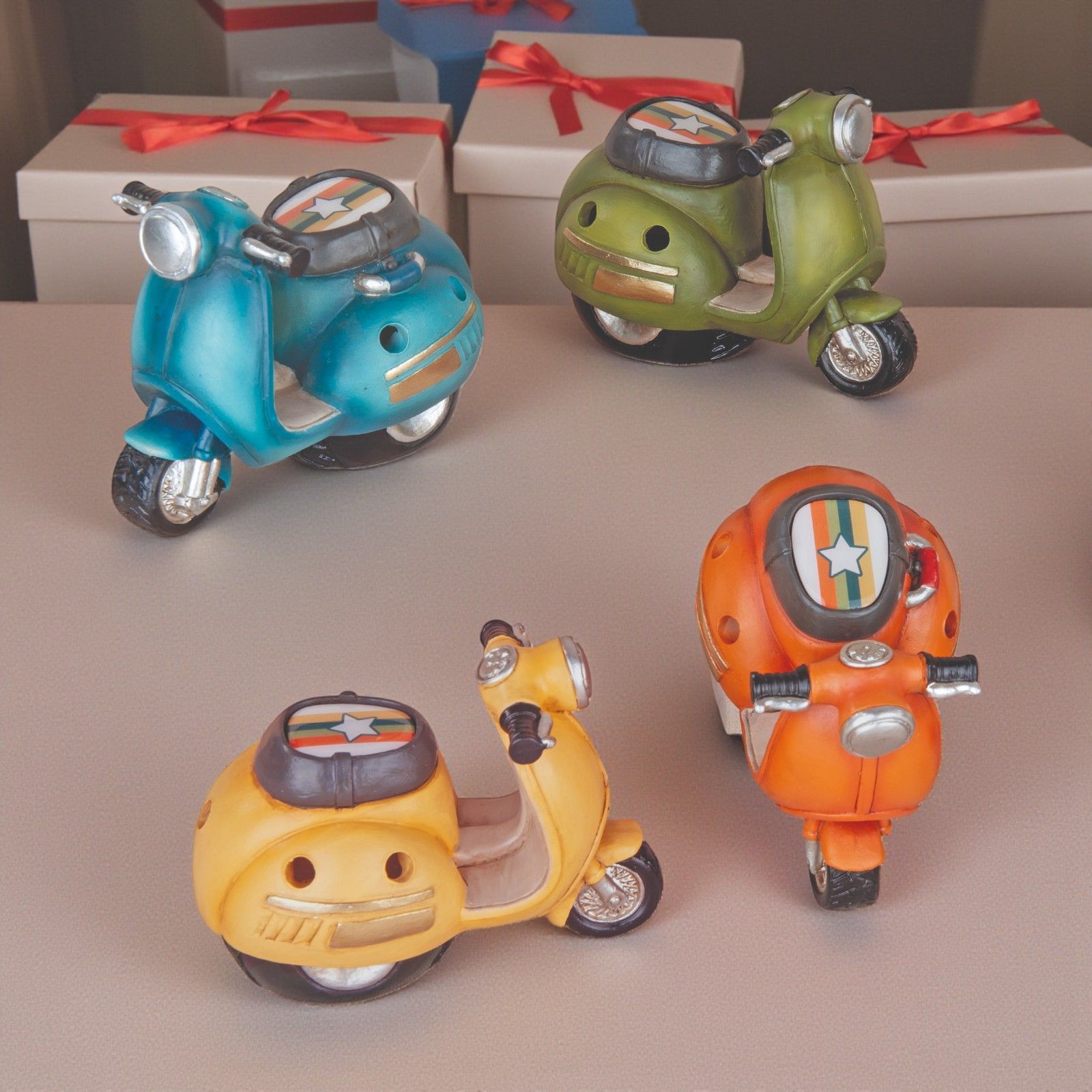 Una lampada LED a for ma di vespa traforata, pensata per rendere ogni evento unico e speciale. Perfetta come bomboniera per comunioni, cresime e feste di 18 anni, questo regalo originale cattura l'attenzione e il cuore di ogni invitato. Ogni lampada, realizzata con cura in resina, è un simbolo di libertà e avventura, perfetta per accompagnare i momenti di crescita dei tuoi cari.