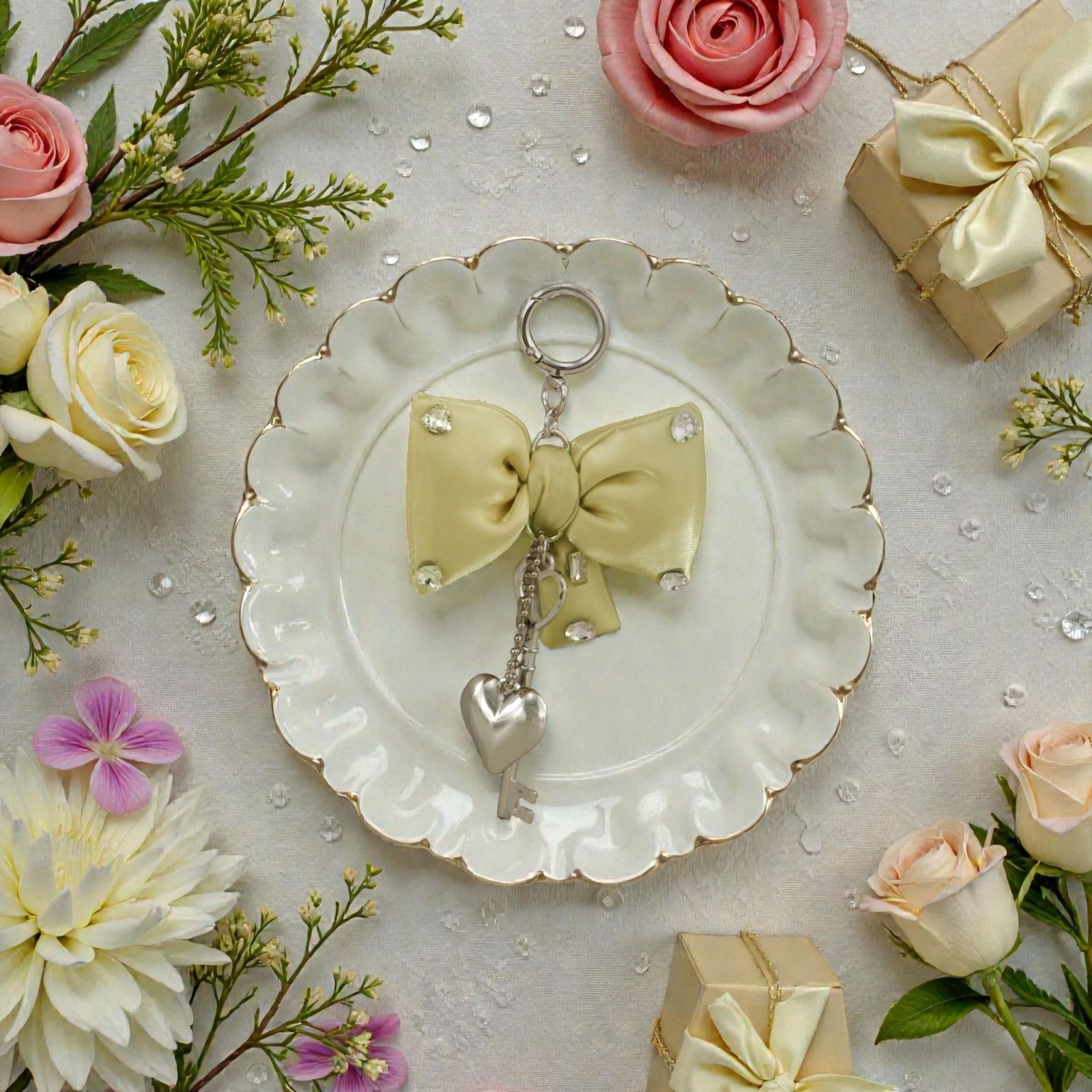 Immagina di rendere il tuo evento ancora più speciale con una bomboniera originale che parla direttamente al cuore. Questo ciondolo a forma di fiocco, adornato con scintillanti strass, non è solo un semplice regalo, ma un simbolo di affetto e gratitudine. Ideale per festeggiare momenti unici come una comunione, una cresima, un diciottesimo o un compleanno, questo ricordo sarà custodito con emozione da tutti i tuoi invitati.