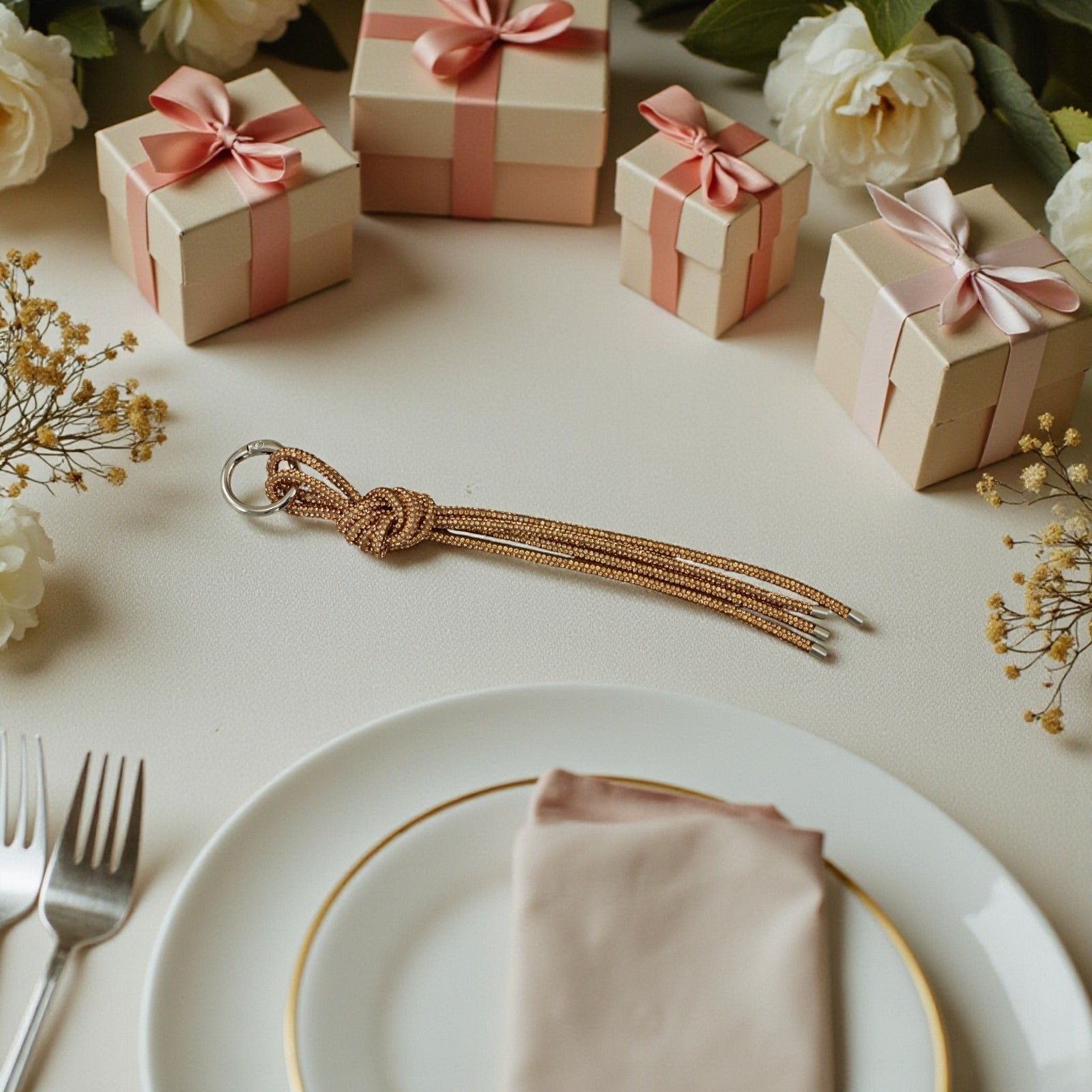 Realizzato con cura e attenzione ai dettagli, il laccio presenta un delicato intreccio di strass che cattura la luce in modo sorprendente, creando un effetto scintillante. Utilizzalo come chiudipacco per i tuoi regali o come elegante segnaposto per stupire i tuoi ospiti. Ogni pezzo è pensato per essere non solo un accessorio, ma un vero e proprio simbolo di amore e affetto che rimarrà nel cuore di chi lo riceve.