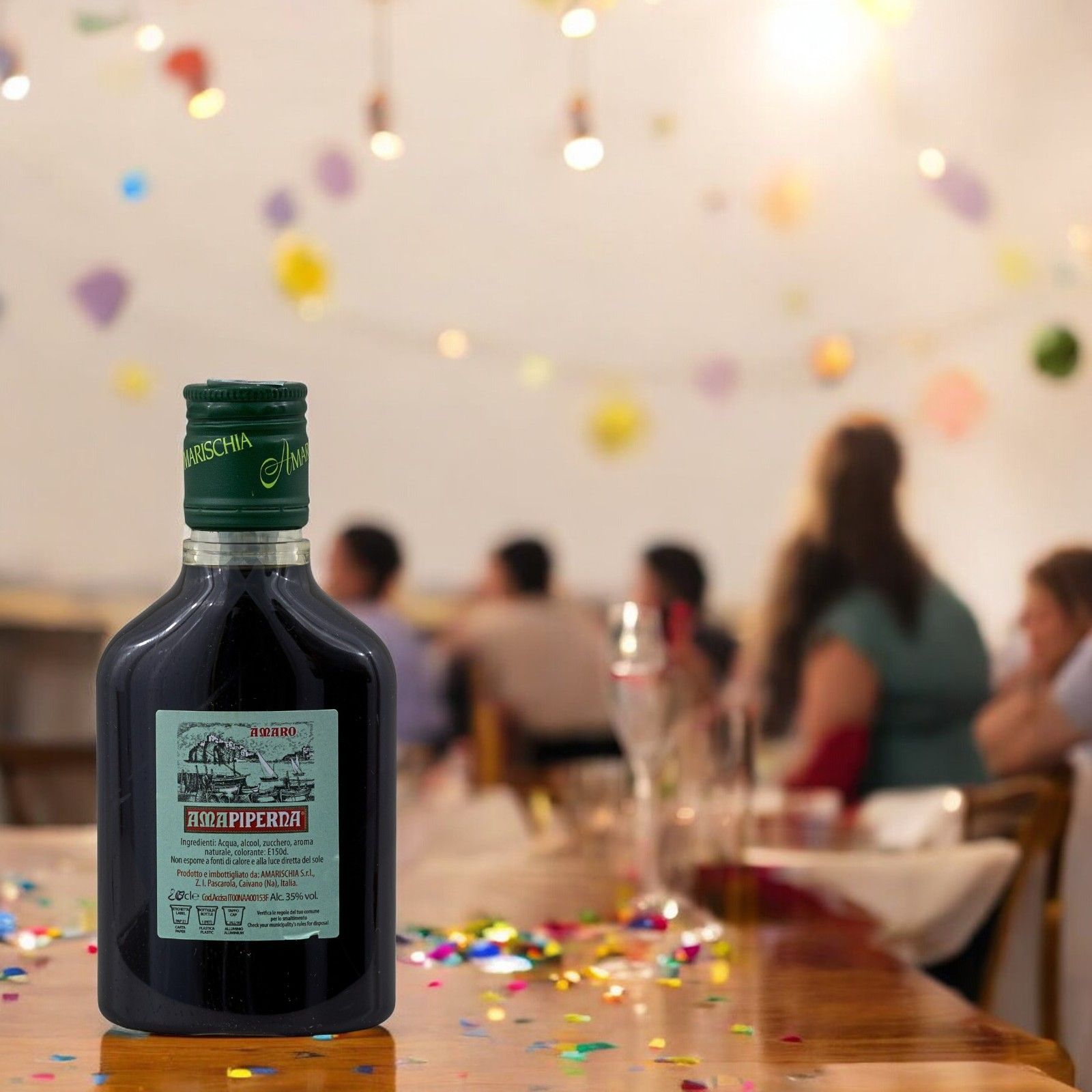 Scopri il Liquore mignonette Amapiperna, un amaro ottenuto da infusione di erbe aromatiche naturali, perfetto come bomboniera per eventi speciali come compleanni, matrimoni, anniversari e diciottesimi.