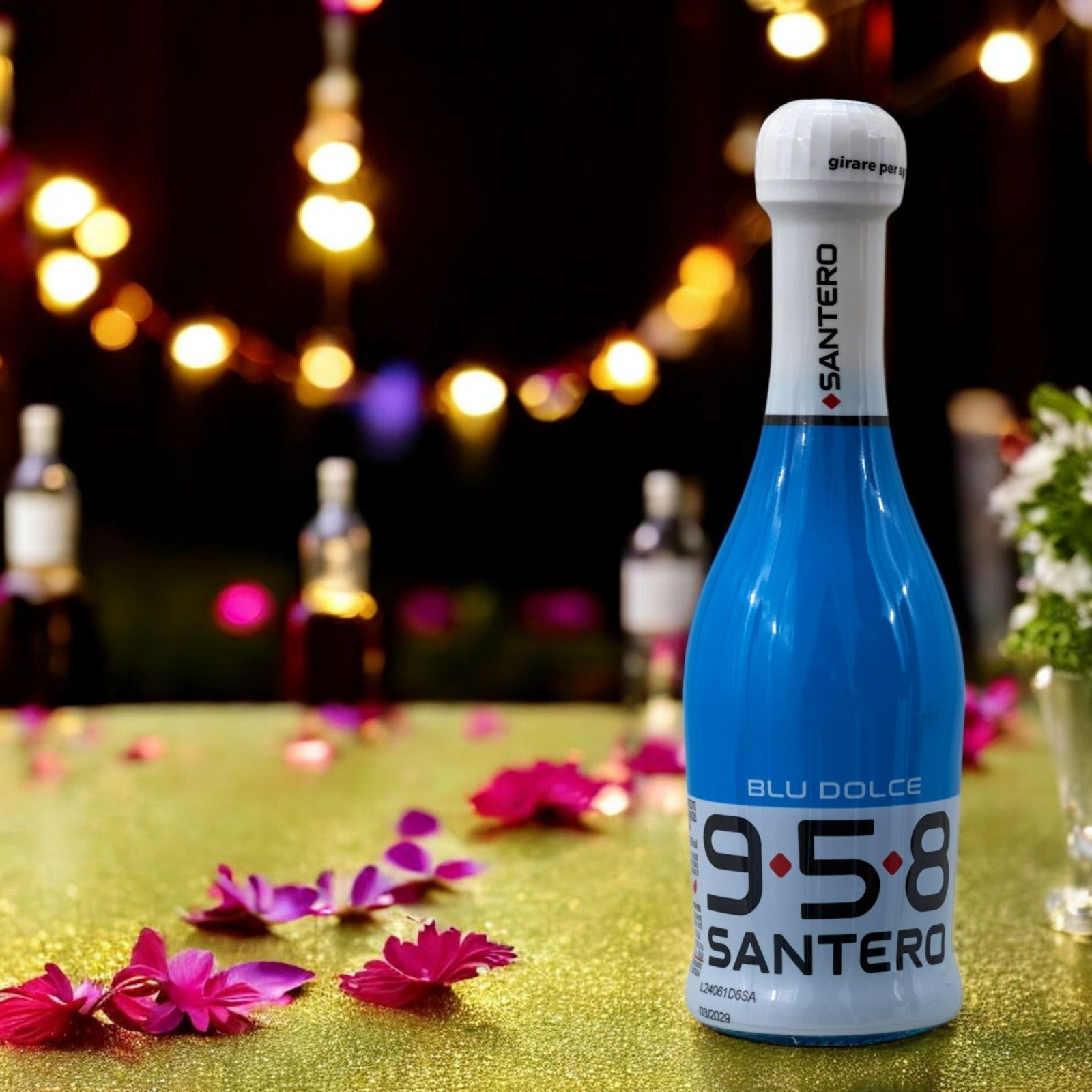 Con il suo colore blu intenso e il materiale di alta qualità in vetro, questa bomboniera è ideale per eventi come compleanni, anniversari, matrimoni e molto altro. Regalando questa mini bottiglia Santero 958 dimostrerai cura e attenzione ai dettagli, rendendo indimenticabile il tuo evento.