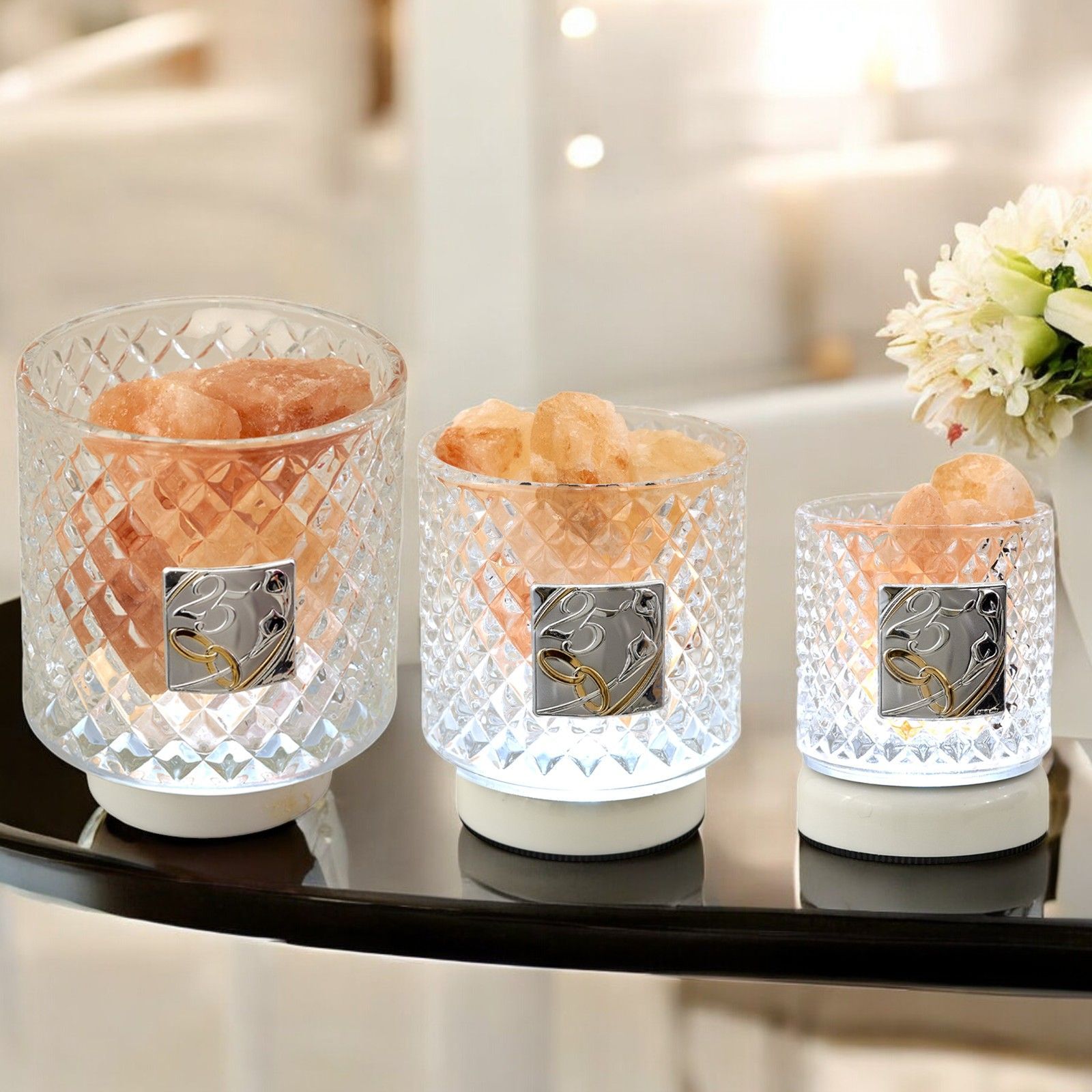 Regalare questa lampada led effetto diamante con sale himalayano rosa è un gesto simbolico e significativo per celebrare l'amore e la complicità di una coppia che festeggia 25 anni di vita insieme. Un'idea completa e originale per rendere ancora più speciale un anniversario indimenticabile.