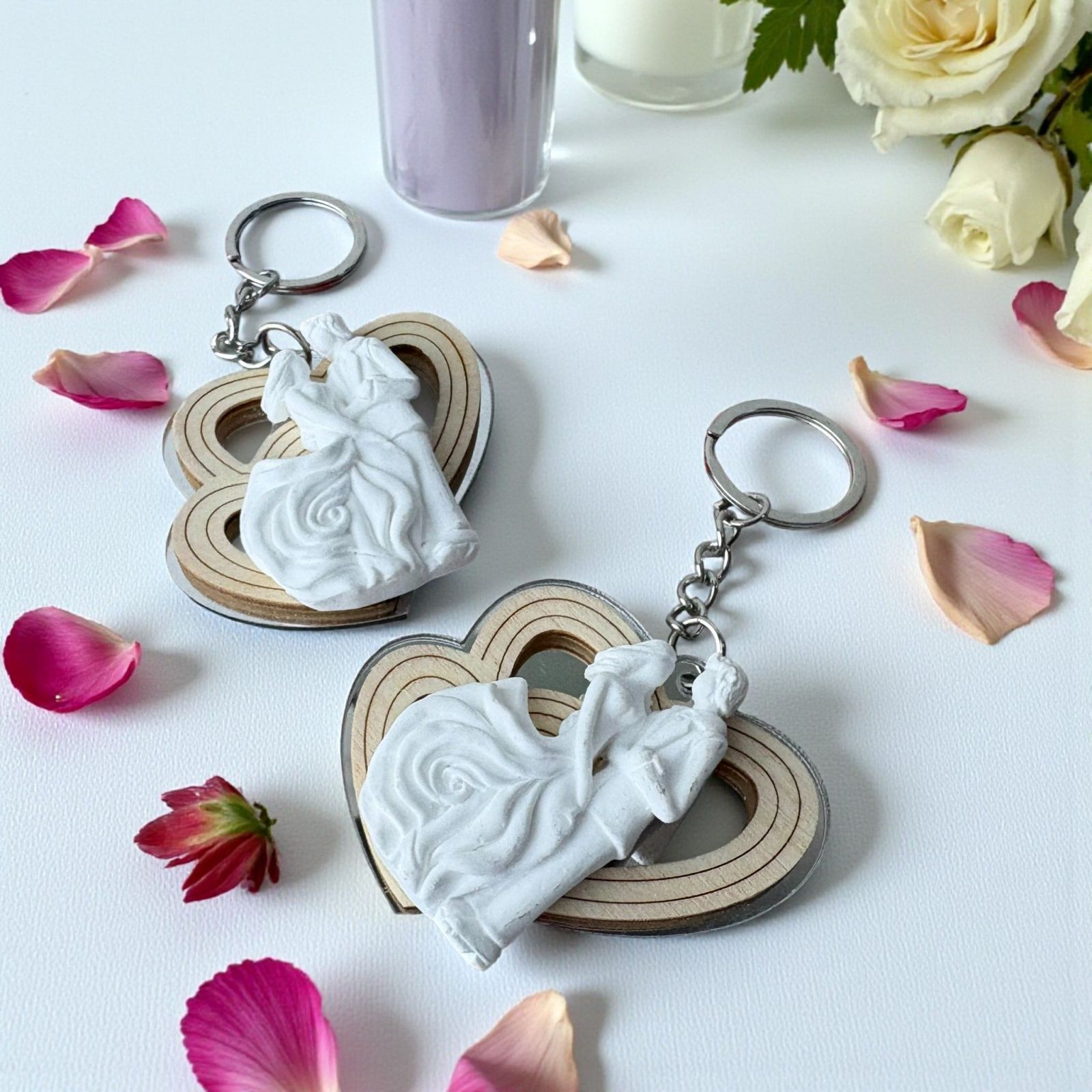 Con il loro design unico e il tocco brillante dell'argento, questi portachiavi non solo abbelliranno la tua confettata, ma racconteranno anche una storia di amore e affetto che rimarrà nel cuore dei tuoi cari. Rendi ogni momento indelebile e celebra l'amore con un regalo che parla di te e della tua storia.