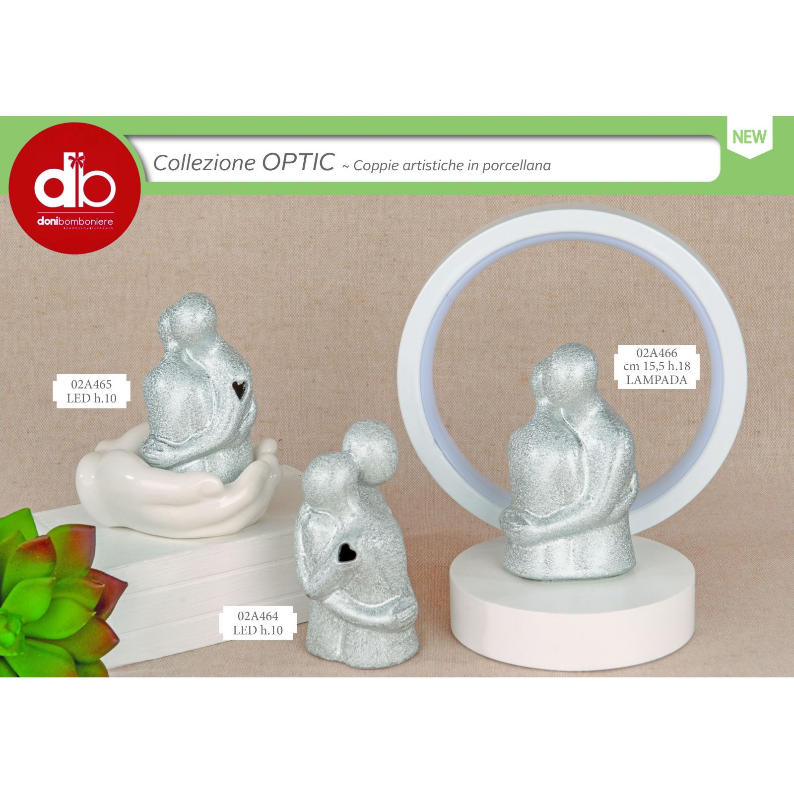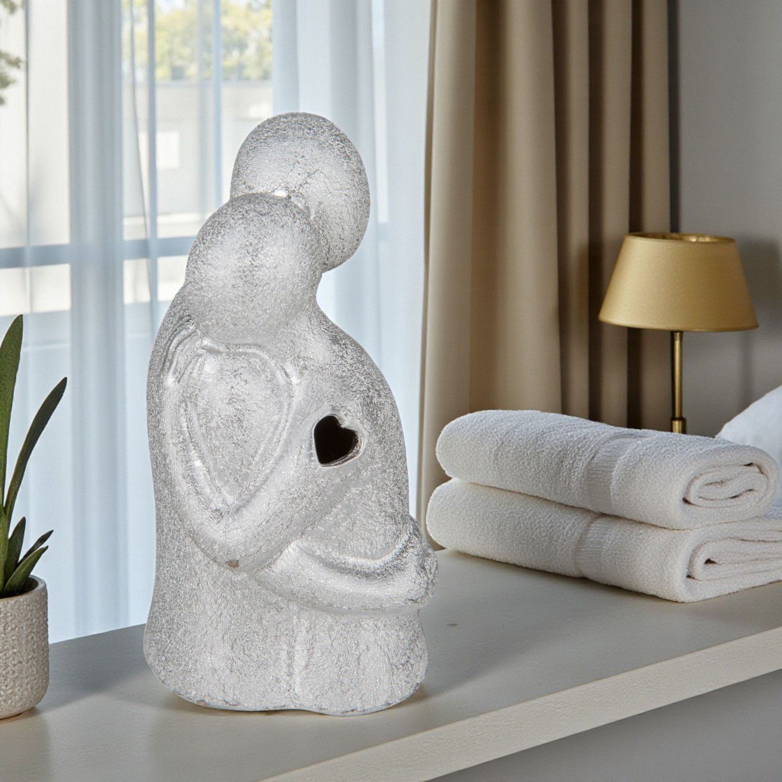 La magia della luce si intreccia con la dolcezza di due figure abbracciate in questa lampada led in porcellana brillantinata, decorata da raffinati trafori a cuore. Un gesto che celebra l’amore eterno, pensato per stupire gli invitati a matrimonio, anniversario e soprattutto agli eventi dedicati alle nozze argento, perfetto per chi desidera idee bomboniere emozionanti e ricche di significato.