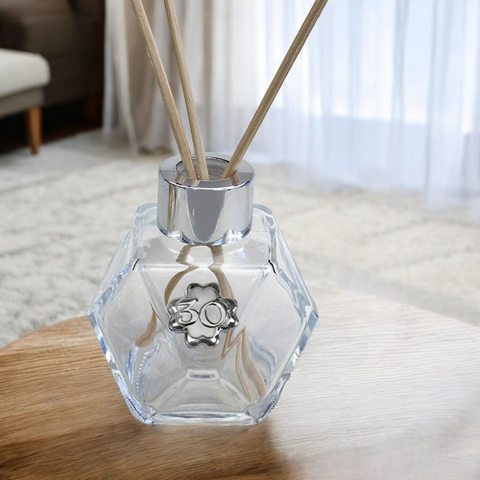 Aggiungi un tocco di eleganza al tuo 30° compleanno con il nostro profumatore ambiente esagonale! Realizzato in vetro trasparente con tappo argento, questo profumatore è un'idea originale per festeggiare un traguardo così importante. Con dimensioni di circa 9 cm di altezza e 4 cm di base, è perfetto per ogni ambiente, dalla casa all'ufficio.