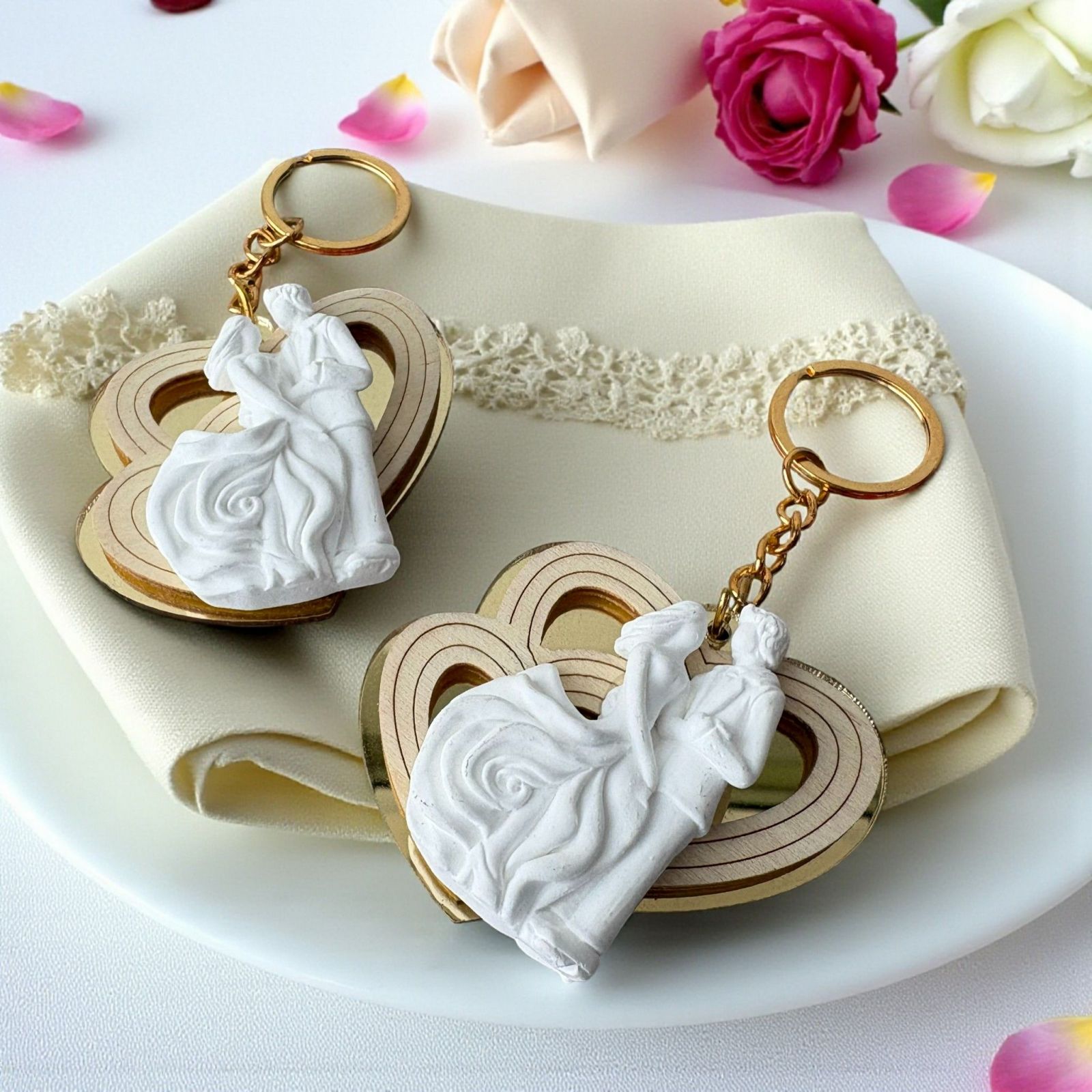 Scopri il nostro portachiavi cuori con sposini, una bomboniera matrimonio unica che cattura l'essenza dell'amore e della gioia. Questo dolce e raffinato oggetto non è solo una semplice bomboniera, ma un simbolo di un legame eterno, perfetto per celebrare il giorno più importante della tua vita o un anniversario speciale come le nozze d'oro. Ogni volta che lo utilizzerai, ti ricorderà dei momenti felici condivisi, rendendo ogni giorno un’occasione per rivivere quelle emozioni.