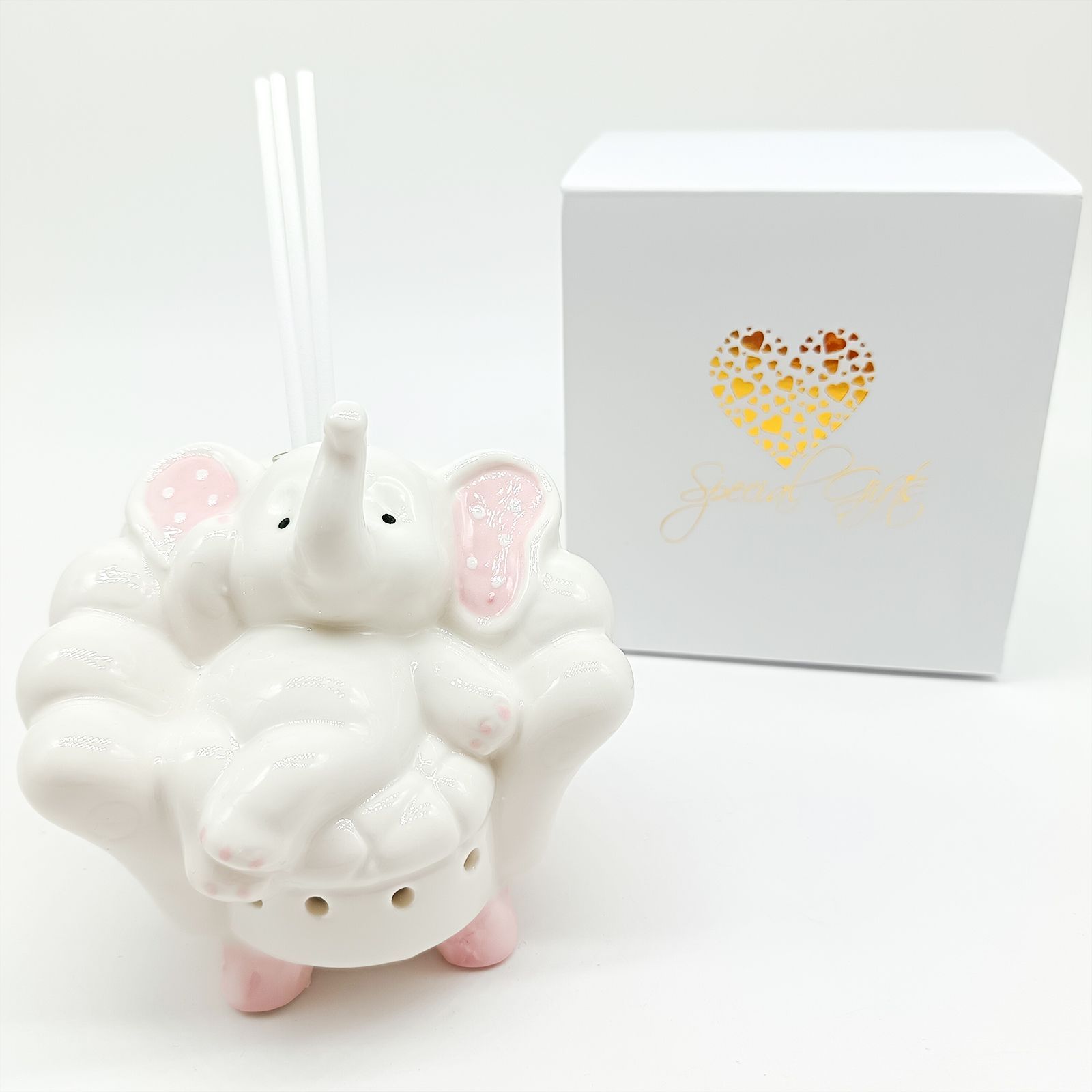 Realizzato in ceramica bianca con dettagli rosa, è completo di bacchette profumate e scatola in omaggio. Una soluzione economica, particolare e funzionale, che illumina e profuma ogni ambiente con stile.