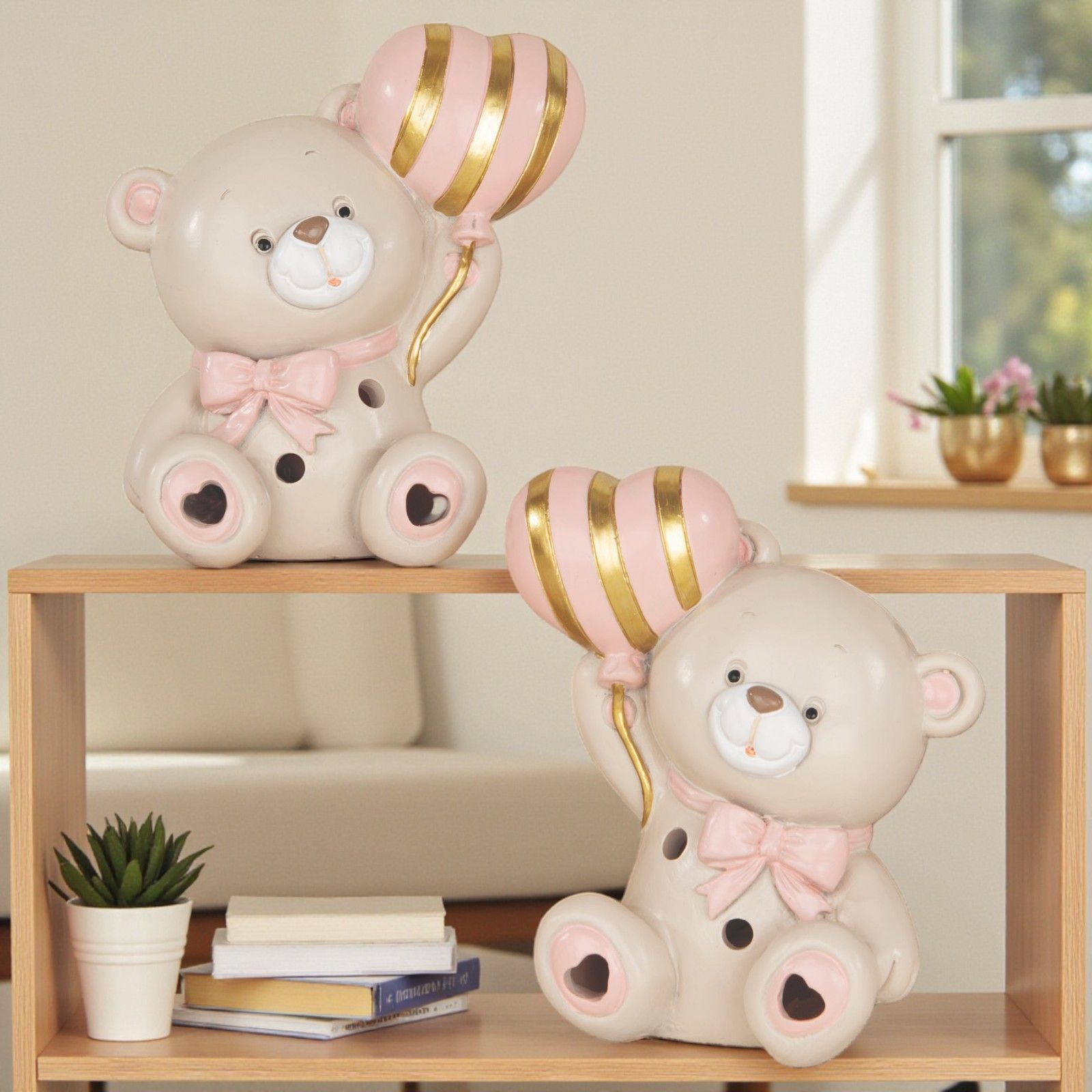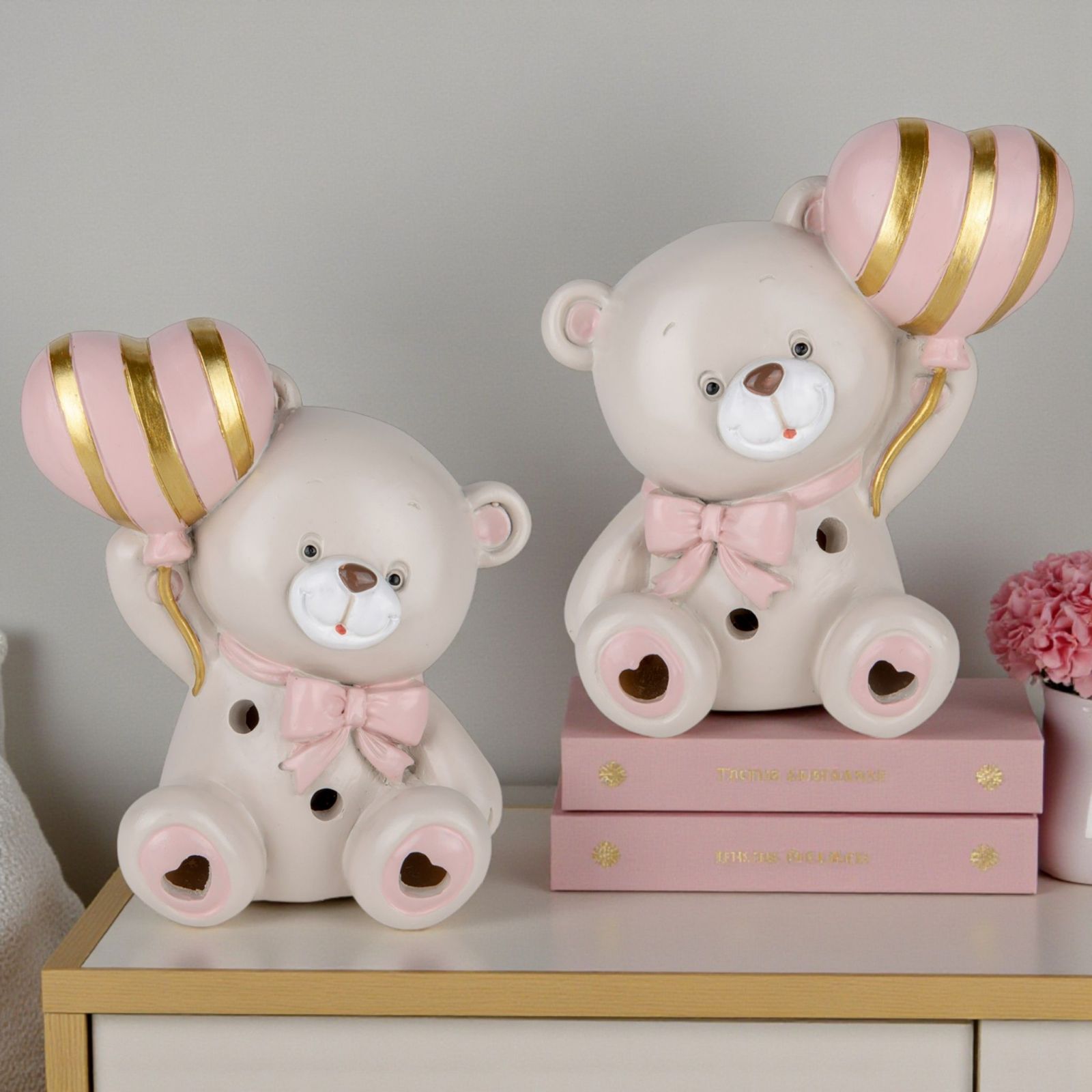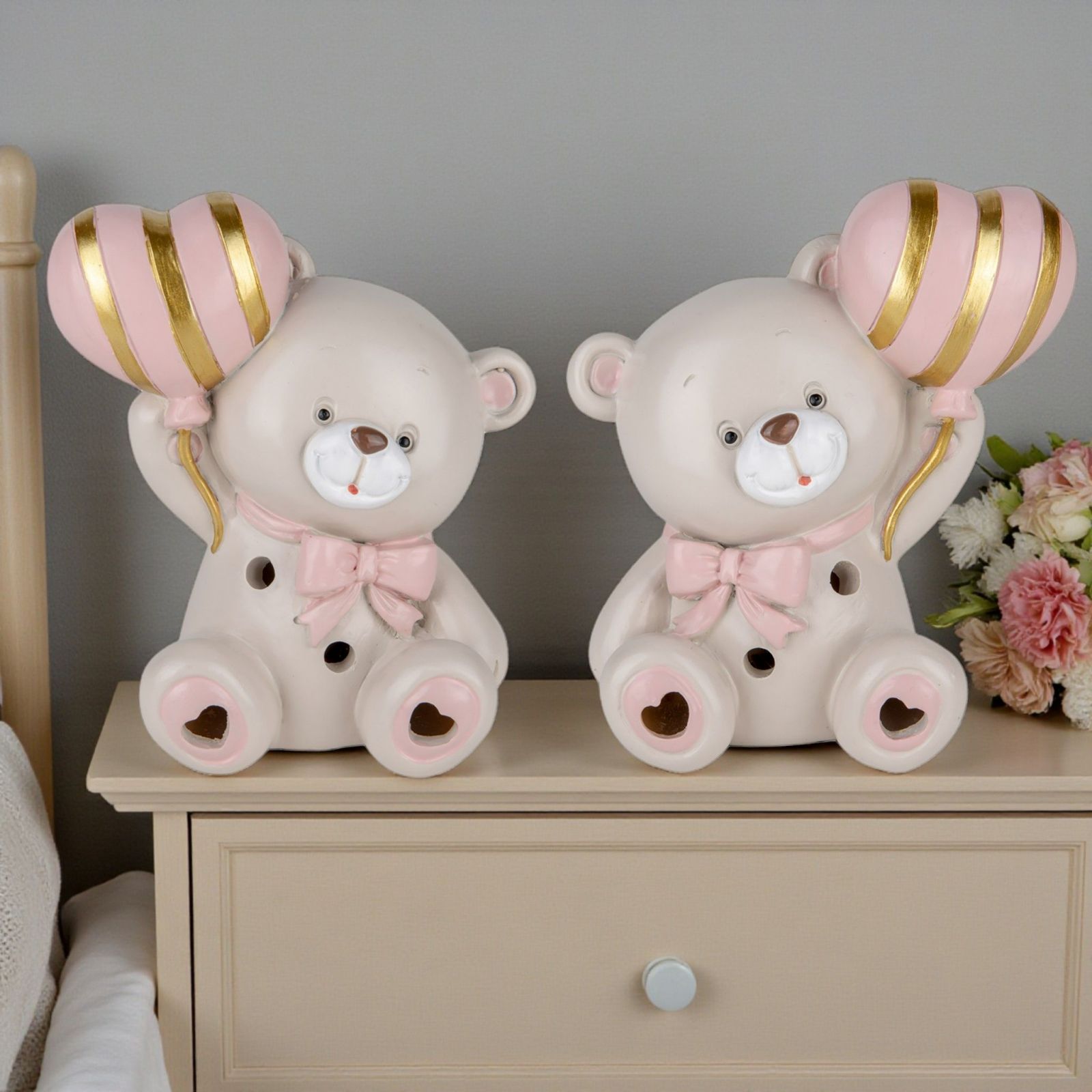 Realizzata in resina di alta qualità, questa bomboniera è non solo un oggetto decorativo, ma anche un simbolo di affetto e gioia. La tonalità tortora, arricchita da dettagli rosa e oro, si sposa perfettamente con ogni ambientazione, rendendola una delle idee bomboniere più originali e economiche per festeggiare l'arrivo della tua piccola. Scegli tra i due modelli disponibili: palloncino a destra o palloncino a sinistra, per una personalizzazione ancora più speciale.