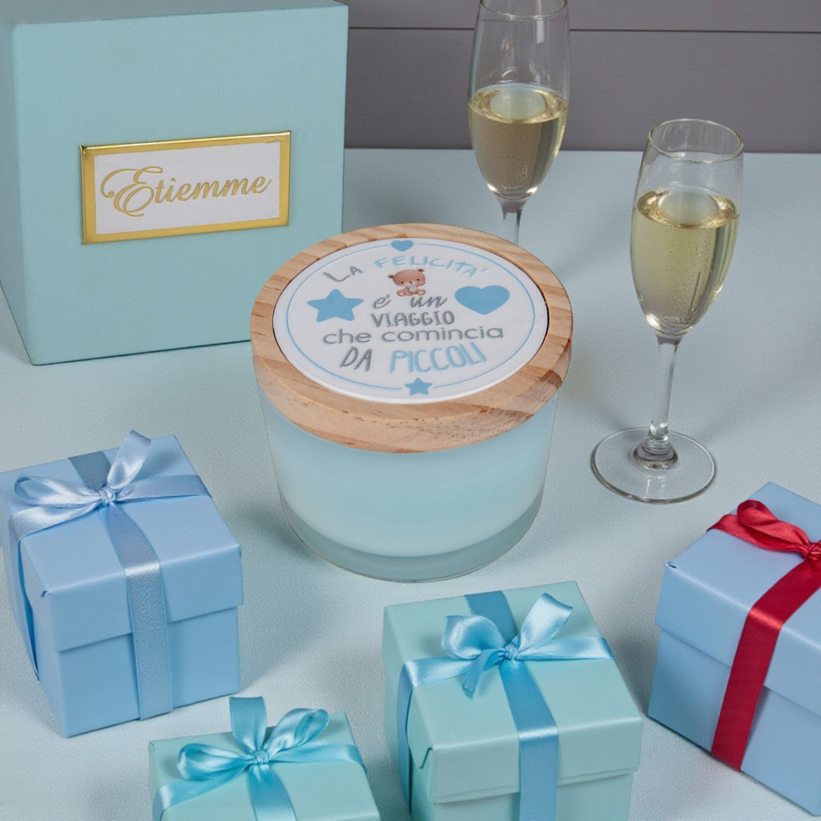 Il portacandela, in un delicato celeste, è una bomboniera economica ma originale, ideale come idee bomboniere bimbo o bomboniere battesimo maschietto. Perfetto per rendere memorabile la festa, combina dolcezza e praticità in un piccolo oggetto che incanta grandi e piccini.