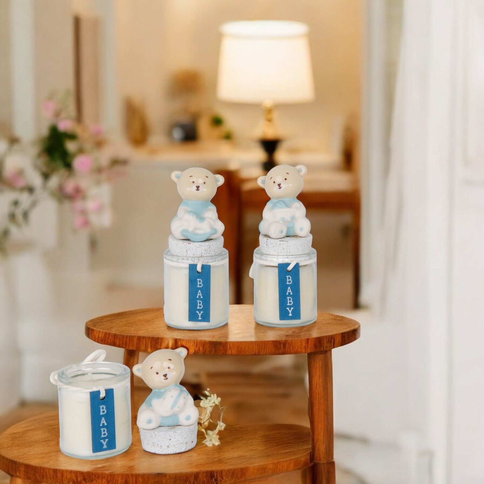 Celebra il battesimo del tuo bambino con una bomboniera tenera e unica: il barattolo con tappo e orsetto. Questo raffinato barattolo, assortito in in tre modelli, contiene una candela profumata, simbolo di luce e amore, perfetto per un’occasione così speciale.