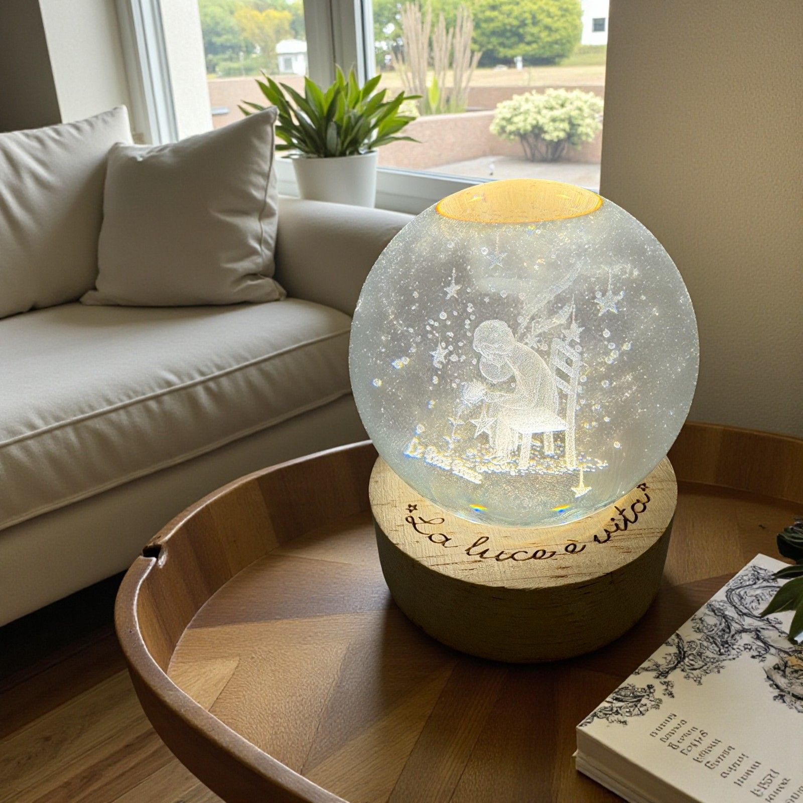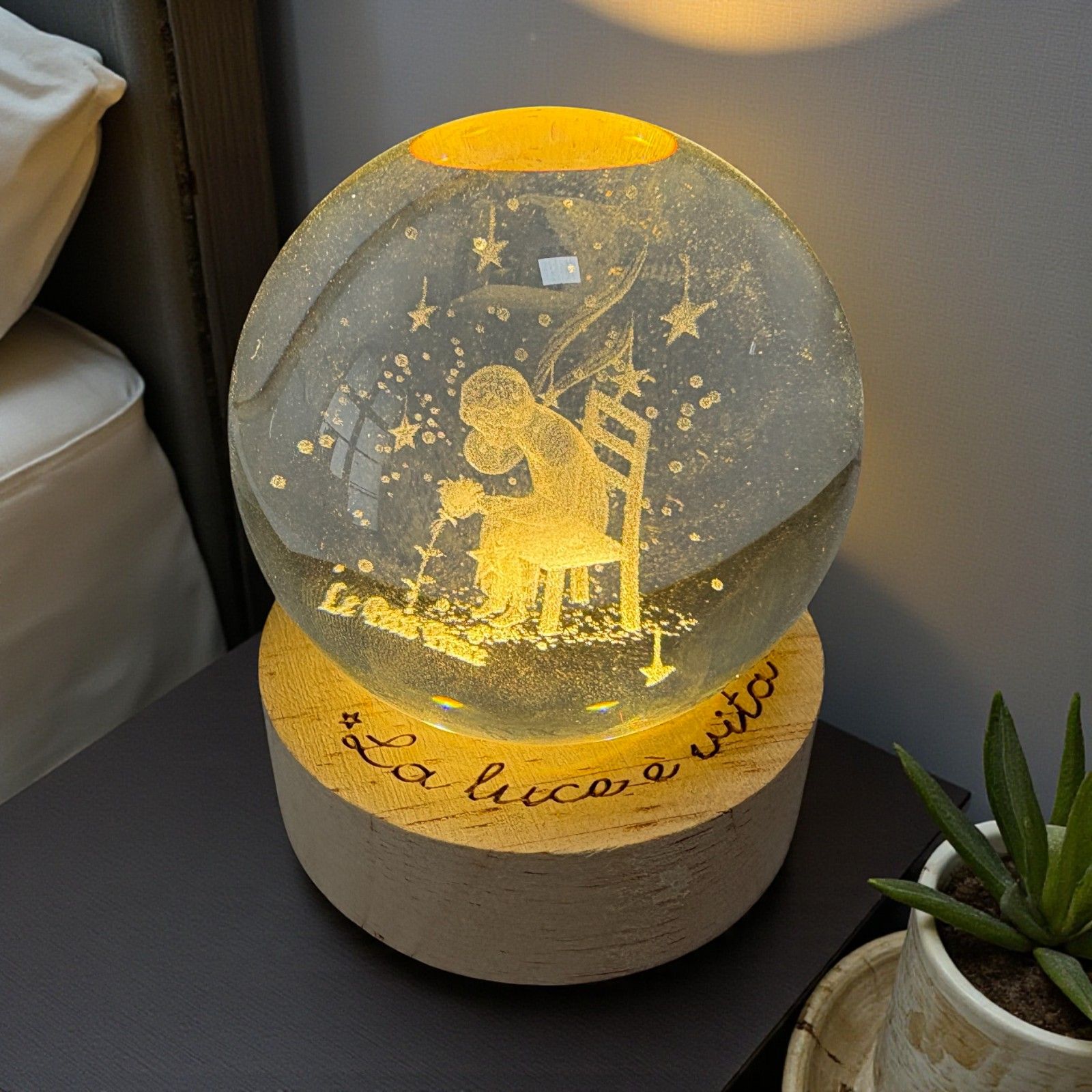 Stai cercando una bomboniera originale e completa per il battesimo del tuo bimbo? La lampada globo tema fiaba piccolo principe è la scelta perfetta! Realizzata in legno e vetro, disponibile in due dimensioni (Standard: 6 x 6 x 8 cm circa; Grande: 8 x 8 x 10 cm), questa bomboniera dal colore legno sarà apprezzata da padrini, madrine e genitori.