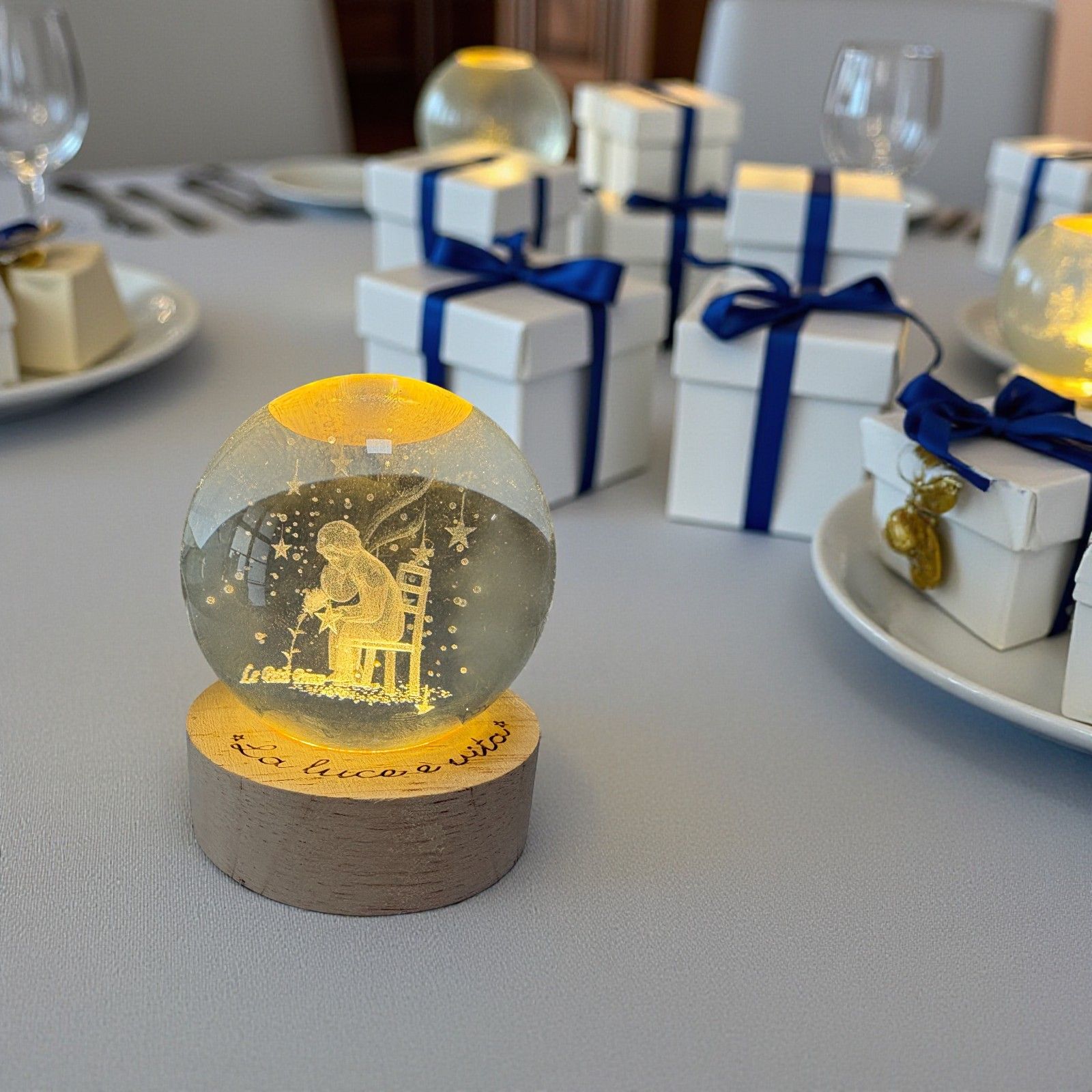 Donare questa bomboniera significa regalare un oggetto unico e simbolico, che rappresenta la purezza e l'innocenza del piccolo principe appena battezzato. Con la lampada globo tema fiaba piccolo principe, renderai ancora più speciale e indimenticabile questo momento importante nella vita del tuo bambino.