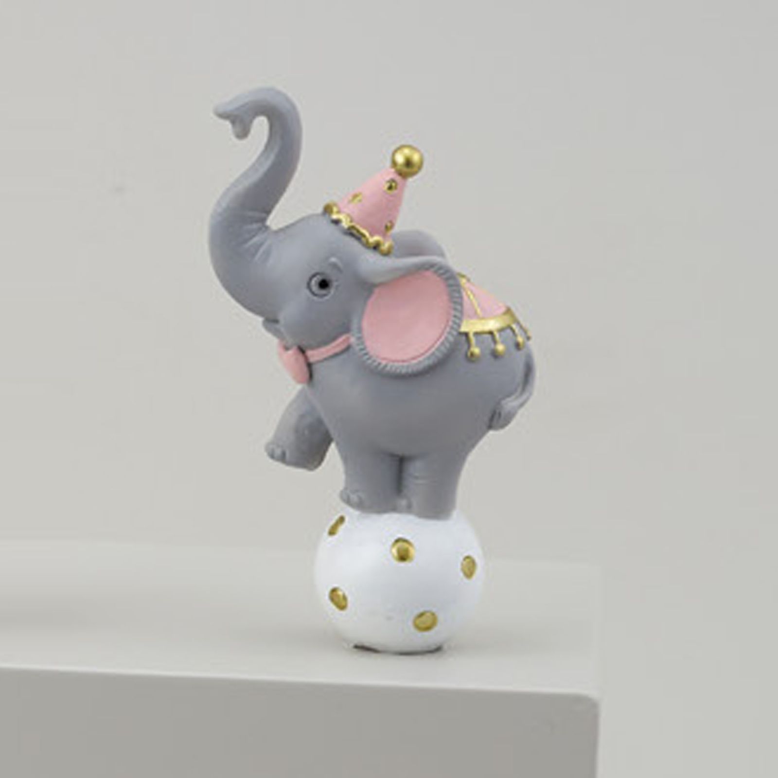 Questa dolce bomboniera Elefantino della linea Circus è perfetta per celebrare un giorno speciale come un battesimo o un compleanno. Realizzata in resina di alta qualità, l'elefantino è rappresentato in piedi su una palla con la proboscide all'insù e un grazioso cappellino rosa.