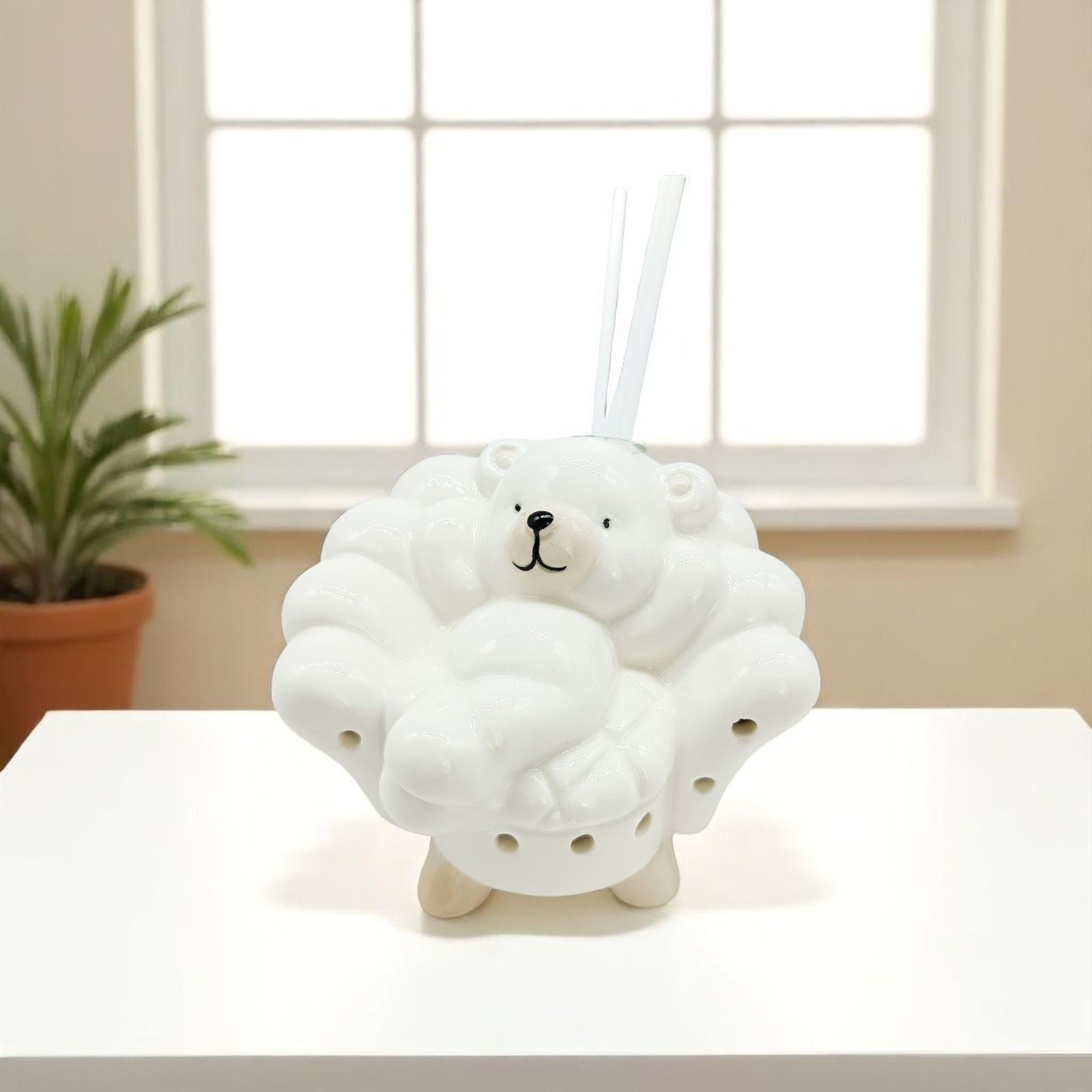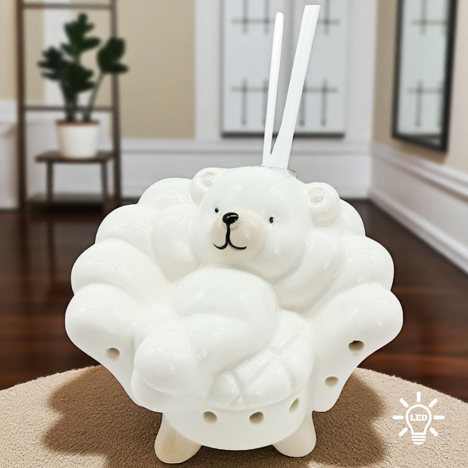 Nel giorno speciale del battesimo o del primo compleanno del tuo piccolo/a, regala un'emozione unica con questo diffusore essenza con lampada LED e orsetto seduto su una poltrona Un'idea originale e particolare per rendere ancora più indimenticabile questo momento.