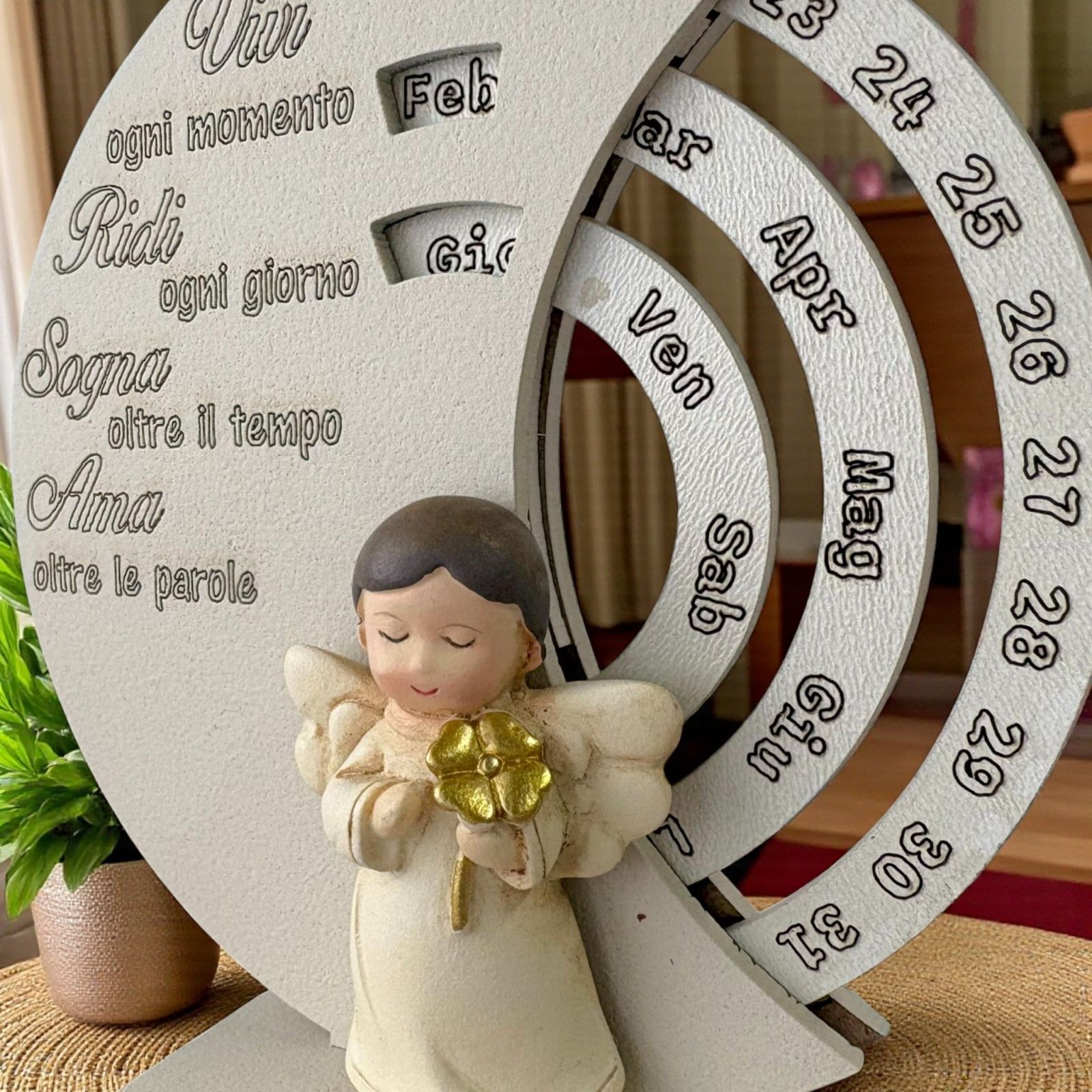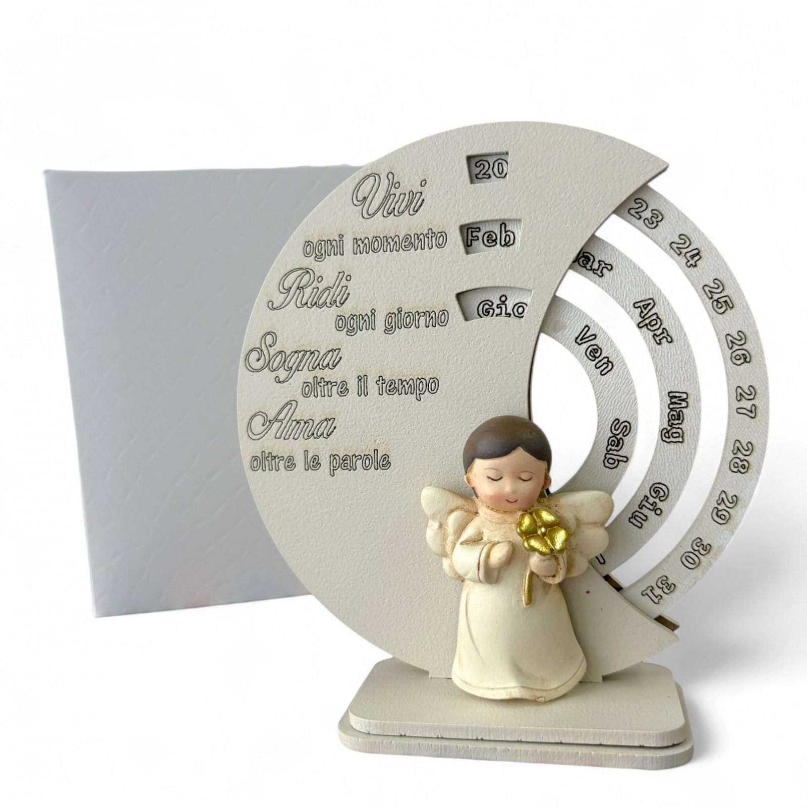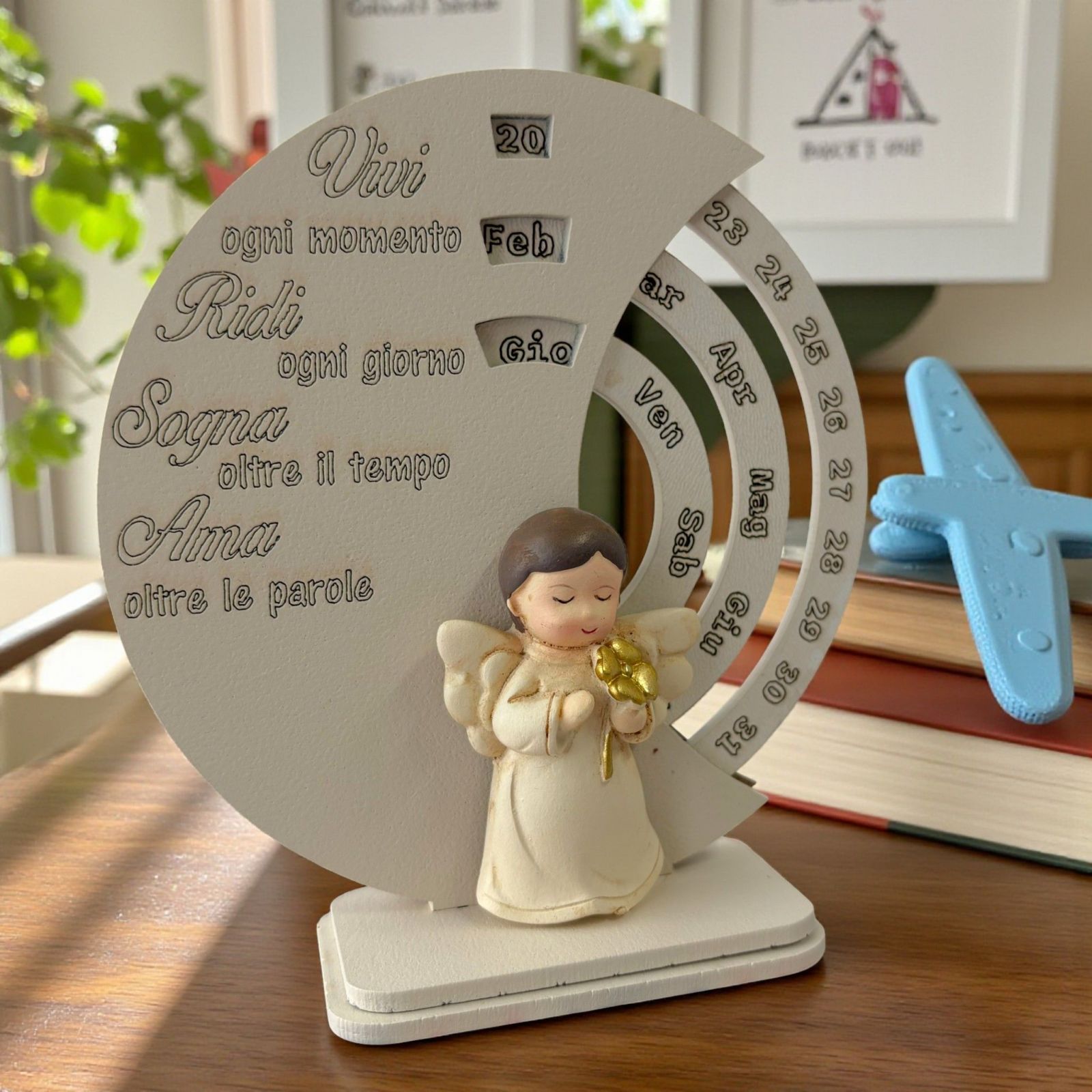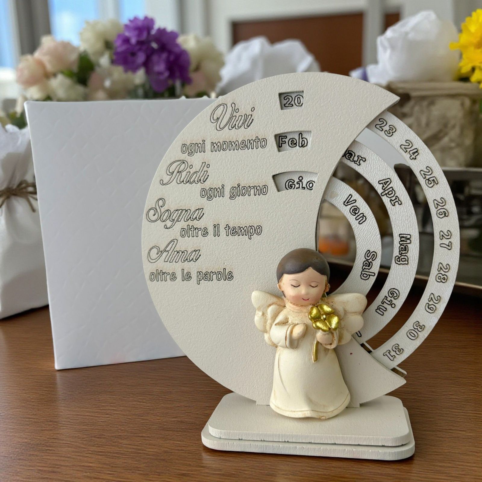 Scopri la nostra bomboniera unica nel suo genere: un calendario perpetuo che non è solo un oggetto da esposizione, ma un vero e proprio messaggero di gioia e positività! Con i suoi tre cerchi rotanti per scegliere giorno, mese e giorno della settimana, questo articolo si trasforma in un compagno di vita, rendendo ogni giorno un'occasione speciale da celebrare. La frase ispiratrice “Vivi ogni momento, Ridi ogni giorno, Sogna oltre il tempo, Ama oltre le parole” imprime un messaggio di amore e speranza, perfetto per ricordare ai vostri cari l'importanza di vivere pienamente.