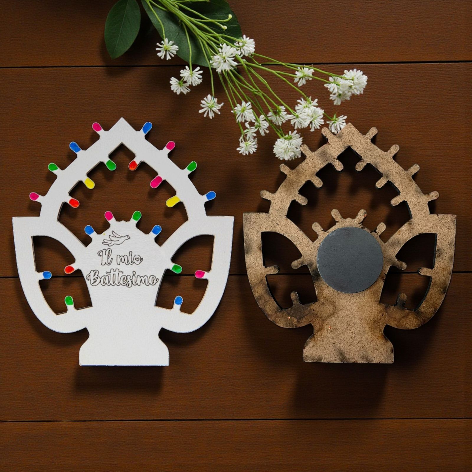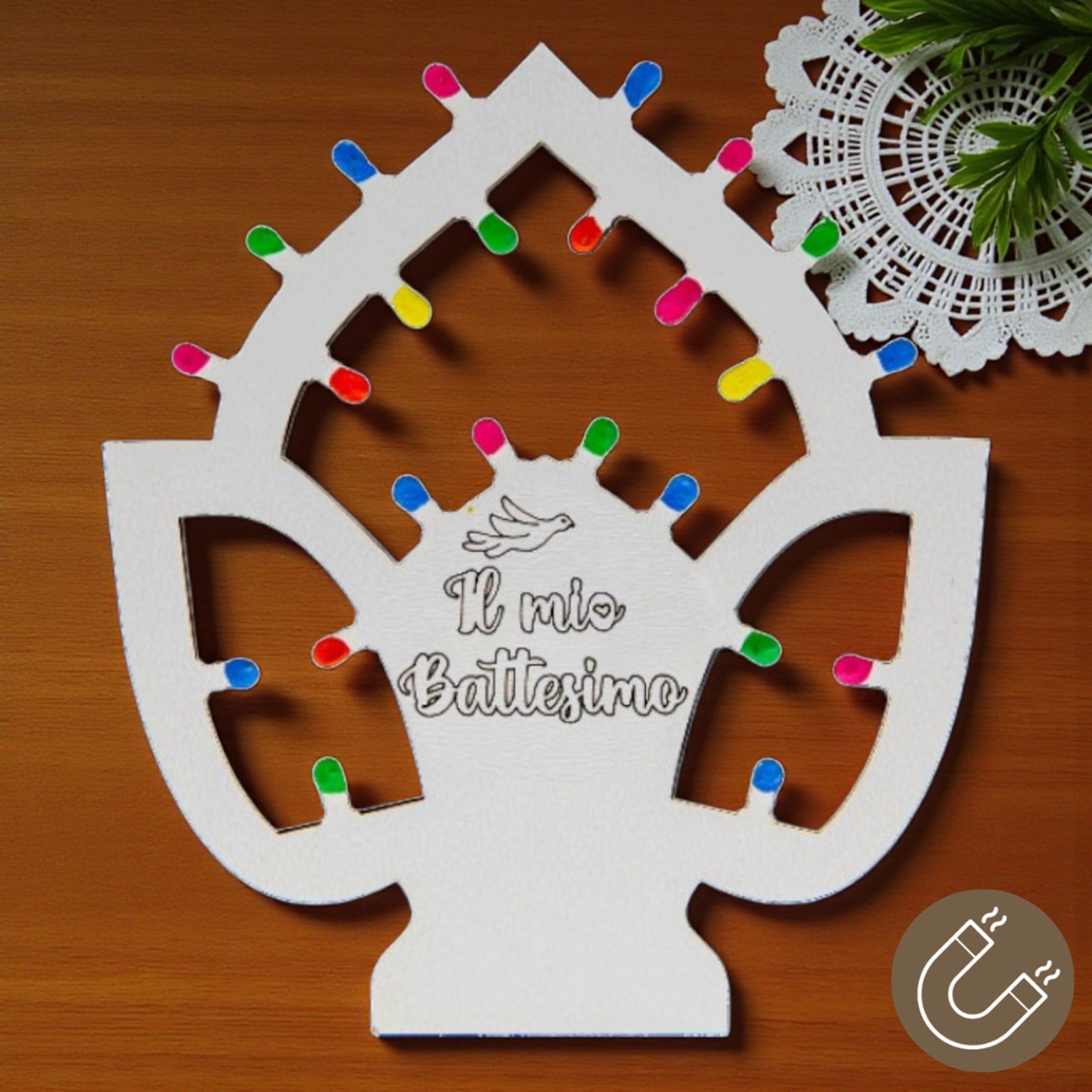 Non c'è regalo più significativo di una bomboniera che racchiuda l'essenza di un momento speciale. Scegli la nostra calamita luminaria a forma di pumo, un dono che parla al cuore e ricorda a tutti la bellezza di un battesimo. Perfetta per chi desidera rendere il giorno del battesimo un evento memorabile, con uno stile unico e inconfondibile.