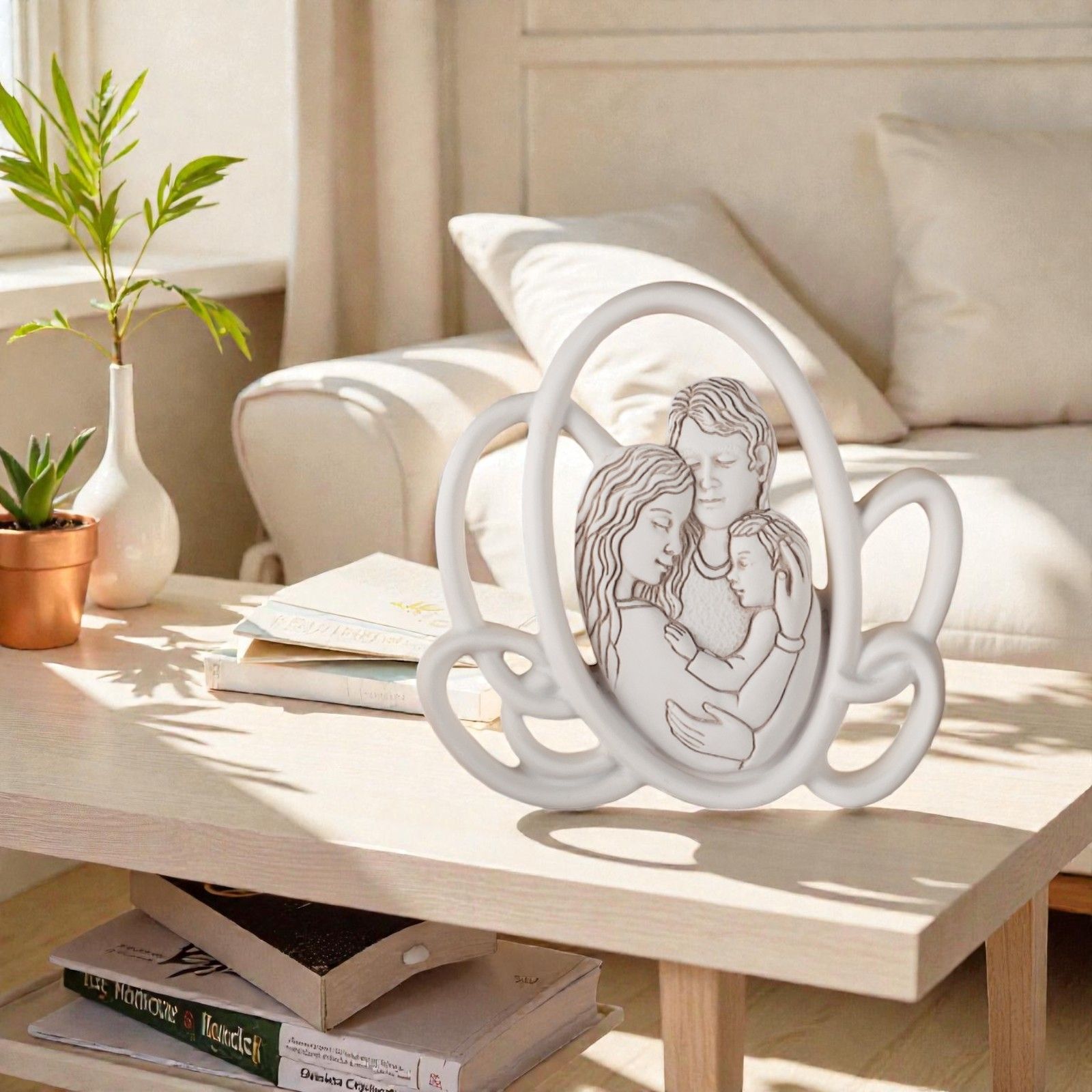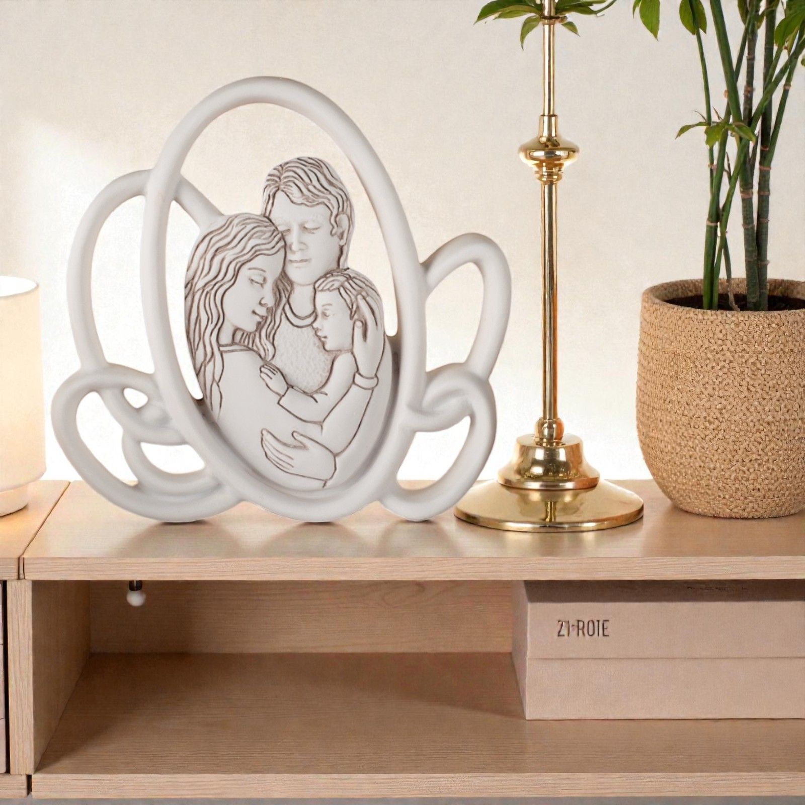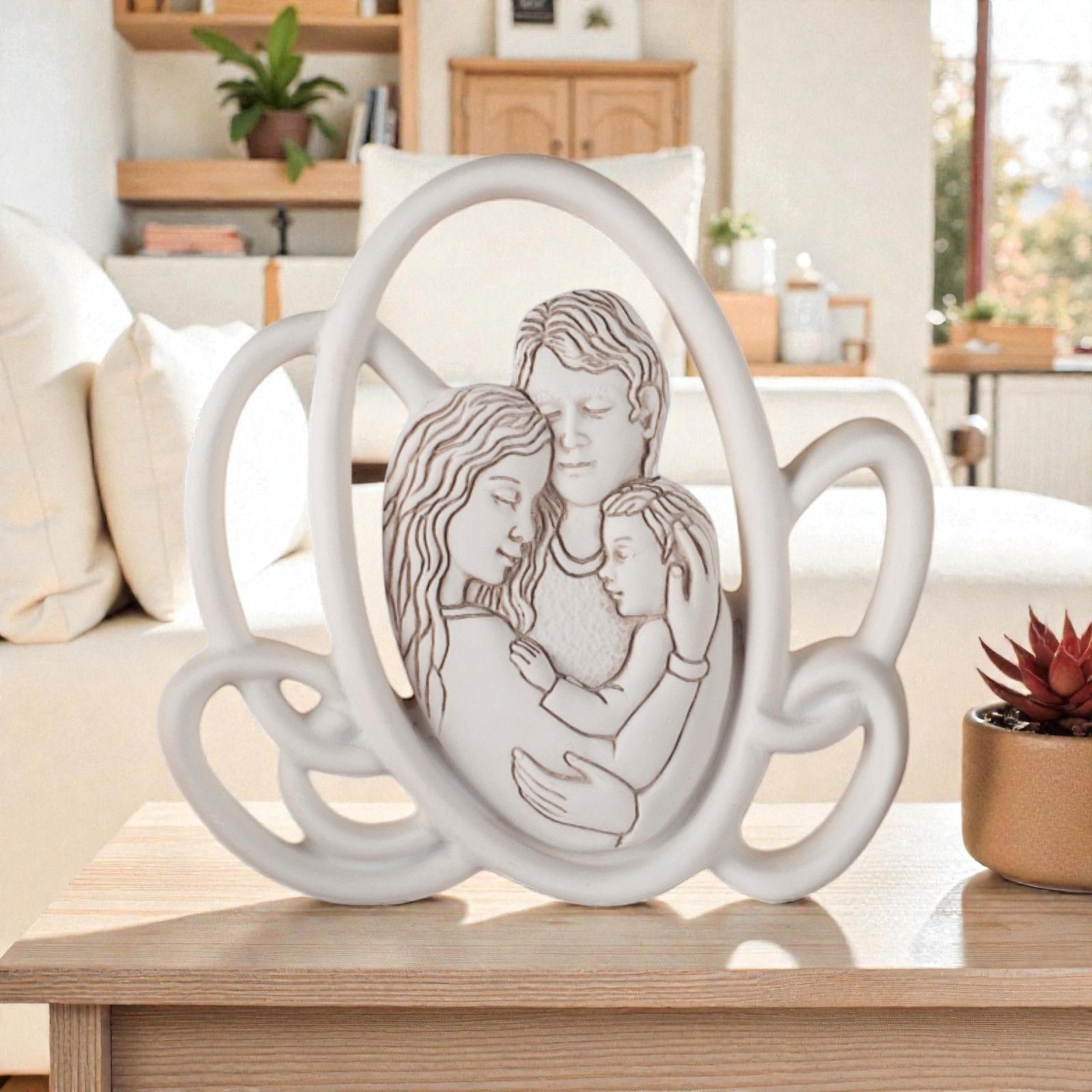 Realizzata in elegante resina bianca, la nostra icona da tavolo è caratterizzata da un design moderno con vari ovali che incorniciano la sacra rappresentazione. Ogni pezzo è pensato per essere un punto di riferimento nella vita del tuo piccolo, un regalo che trasmette valori profondi e un senso di appartenenza alla comunità e alla fede.