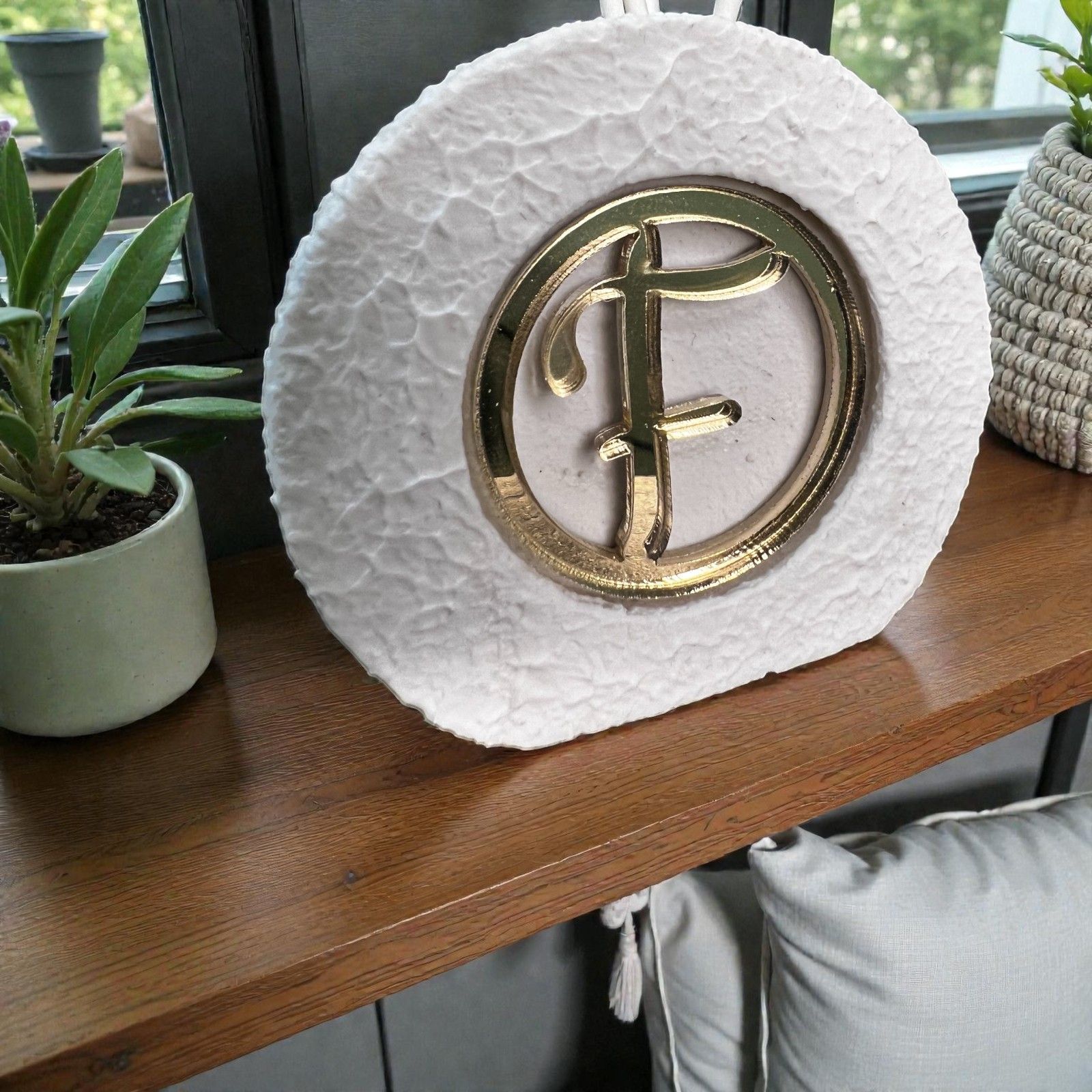 Realizzato in resina effetto pietra, il nostro profumatore tondo è disponibile con un'elegante applicazione al centro in plexiglass, che presenta una lettera a scelta. Questo dettaglio personalizzato permette di celebrare ogni bambino, sia maschio che femmina, rendendo le bomboniere battesimo e bomboniere comunione davvero uniche. La scatola regalo, i bastoncini e l'essenza profumata inclusi completano questa proposta, rendendo il tuo dono ancora più prezioso.