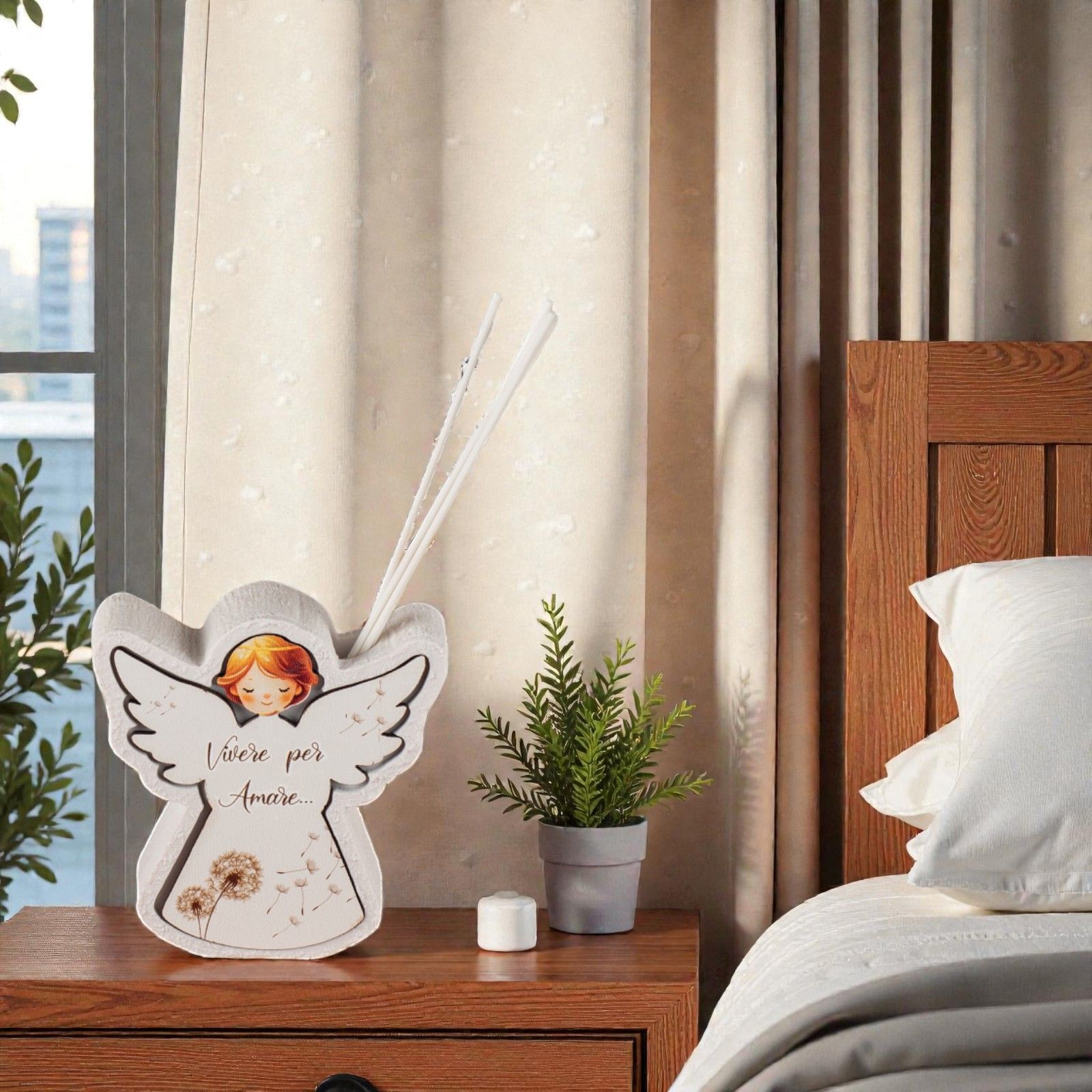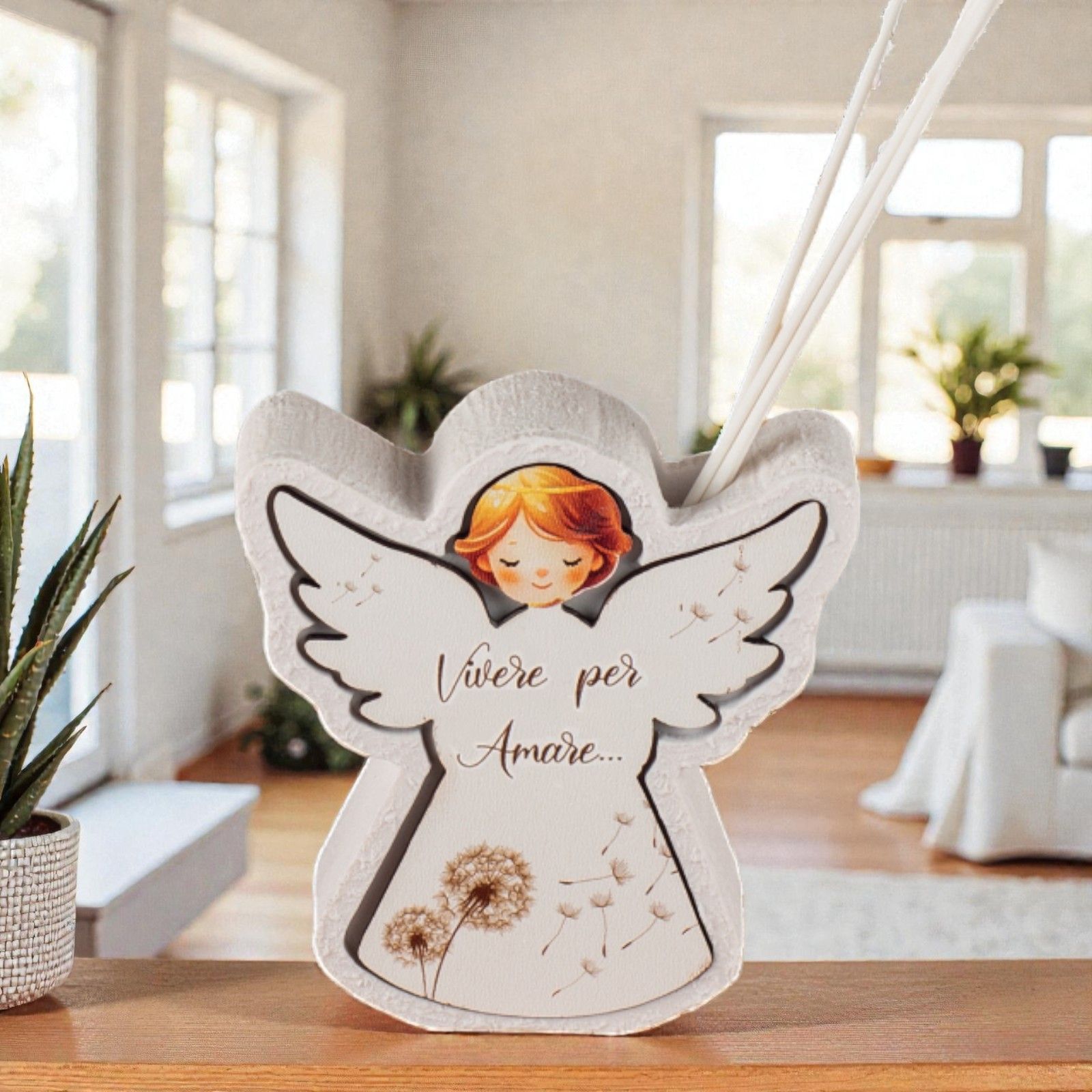 Scopri la magia del nostro profumatore per ambienti a forma di angelo, un regalo che va oltre l'oggetto materiale. Perfetto come bomboniera battesimo o bomboniera comunione, questo diffusore di essenze è un simbolo di amore e protezione, capace di portare un'atmosfera serena e spirituale nei momenti più significativi della vita. Ogni volta che verrà utilizzato, ricorderà i valori di amore e famiglia.