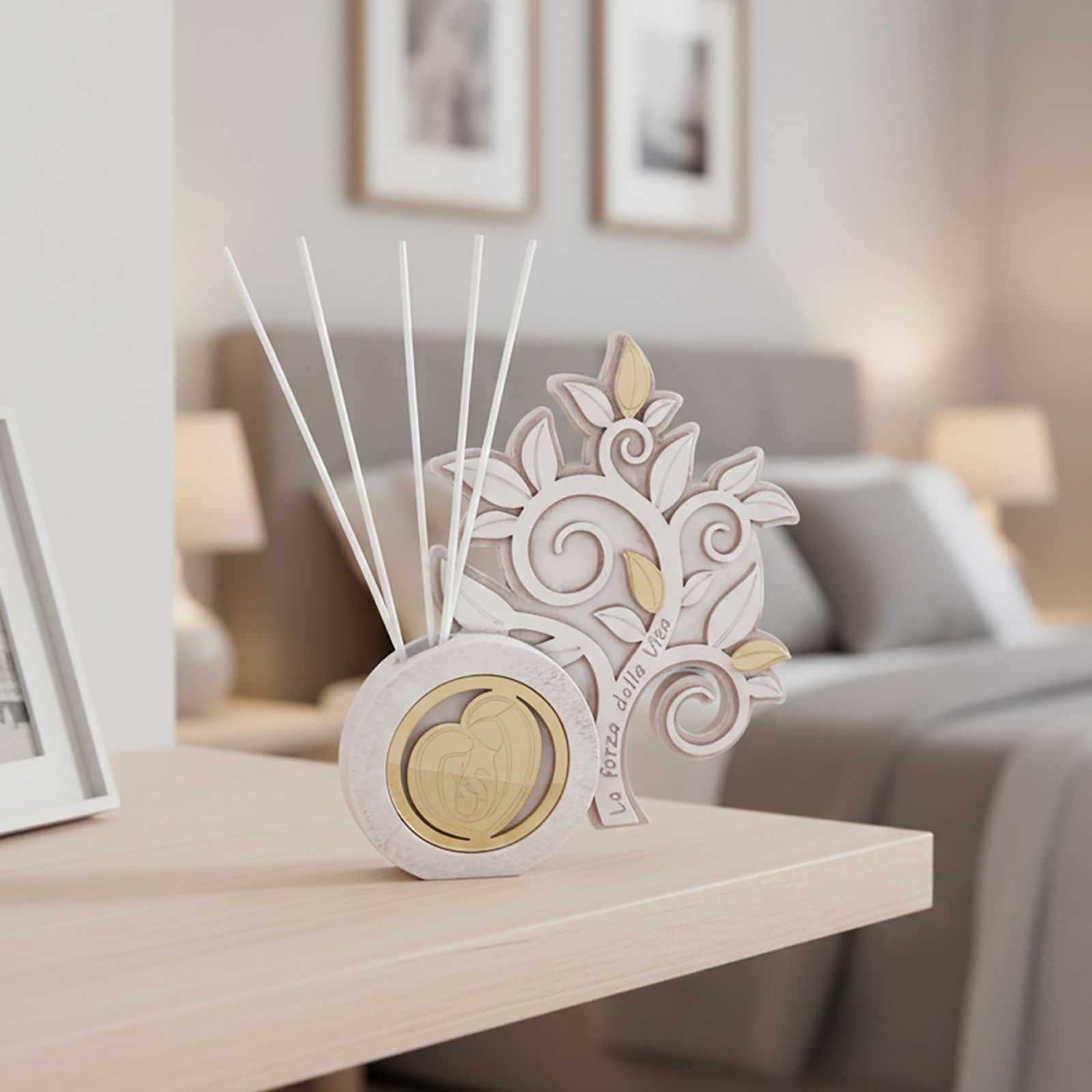Scopri il nostro profumatore albero della vita, un regalo che va oltre il semplice gesto di omaggiare. Questo elegante diffusore, decorato con la Sacra Famiglia, in plexiglass dorato, è ideale per rendere memorabili occasioni speciali come battesimi e comunioni. Ogni volta che verrà utilizzato, diffonderà un delicato profumo, creando un'atmosfera di serenità e amore, perfetta per celebrare la vita.