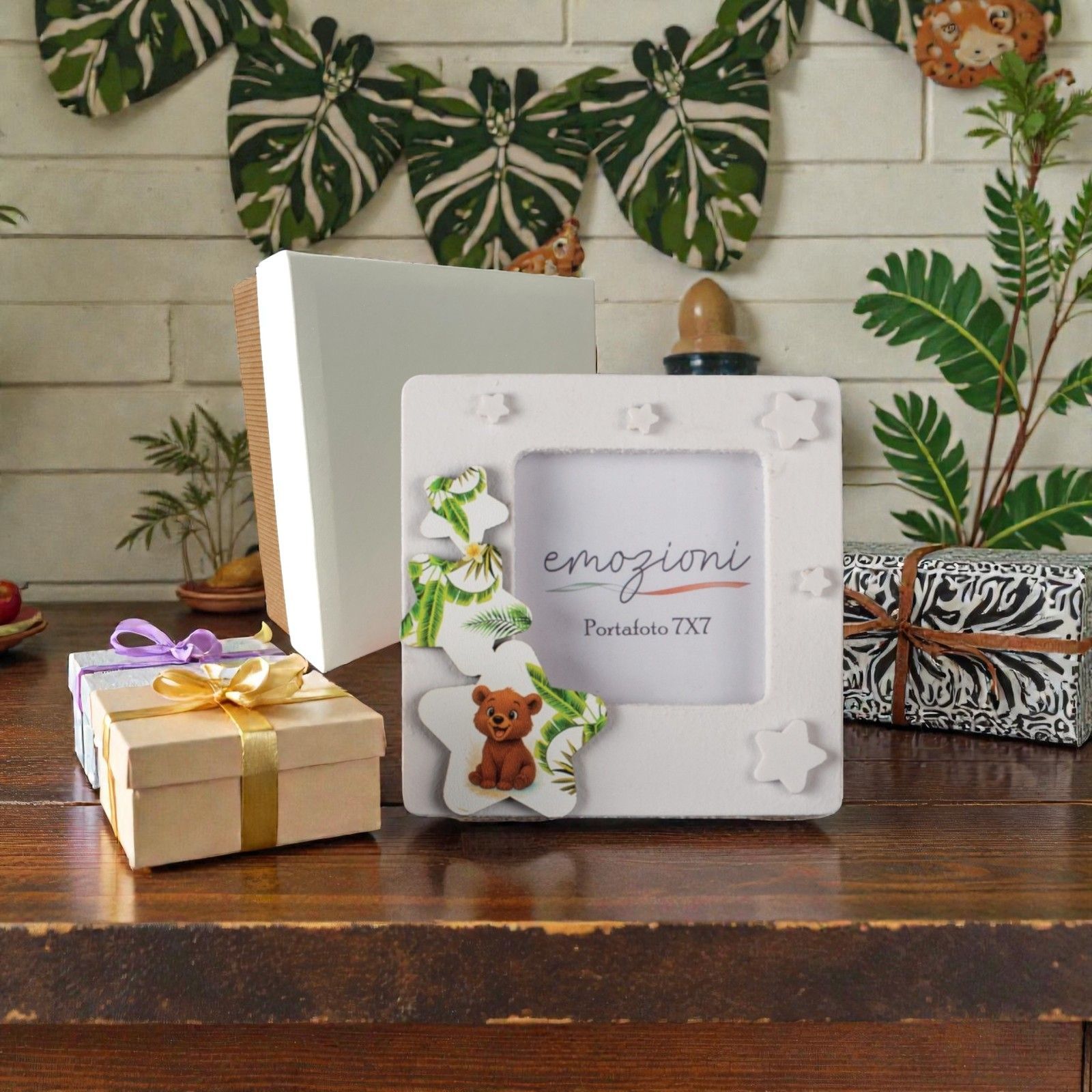 Immagina di immortalare i momenti più preziosi del tuo piccolo in una cornice unica e delicata, perfetta per il battesimo o la comunione. Questa cornice per foto con orsetto e stelle è un simbolo d’amore e di felicità, ideale per conservare ricordi indimenticabili. Ogni dettaglio è curato con amore, rendendo questo prodotto una delle migliori bomboniere battesimo e bomboniere comunione.