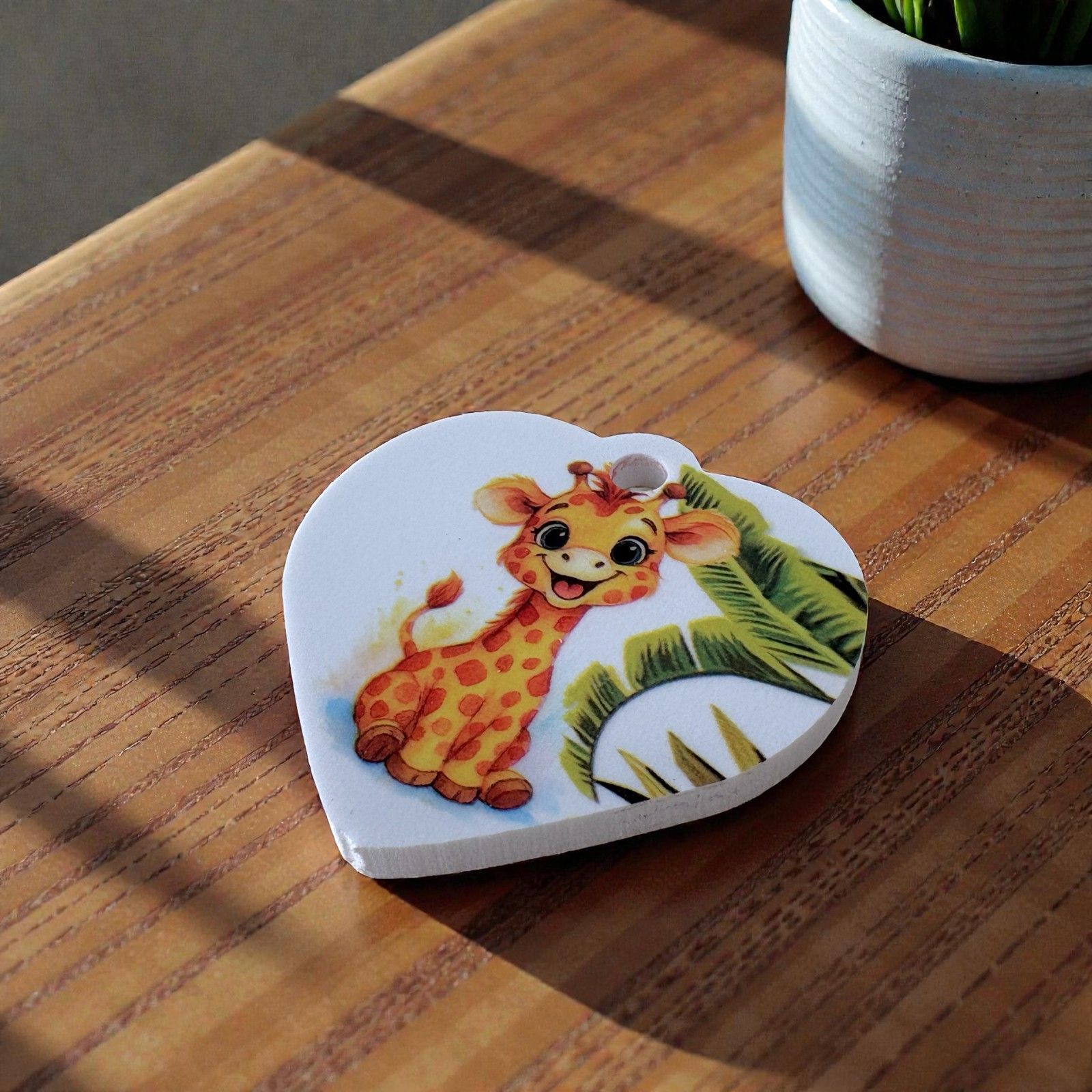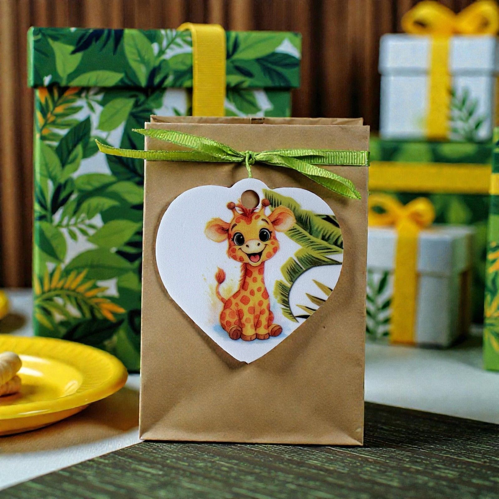Scopri la magia di un momento indimenticabile con il nostro ciondolo a forma di cuore decorato con una dolce giraffa e foglie di palma verdi. Questo esclusivo elemento di design è perfetto per rendere speciali le tue bomboniere battesimo, bomboniere comunione e bomboniere compleanno. Ogni dettaglio di questo ciondolo esprime amore e affetto, trasformando ogni evento in un ricordo prezioso da custodire nel cuore.