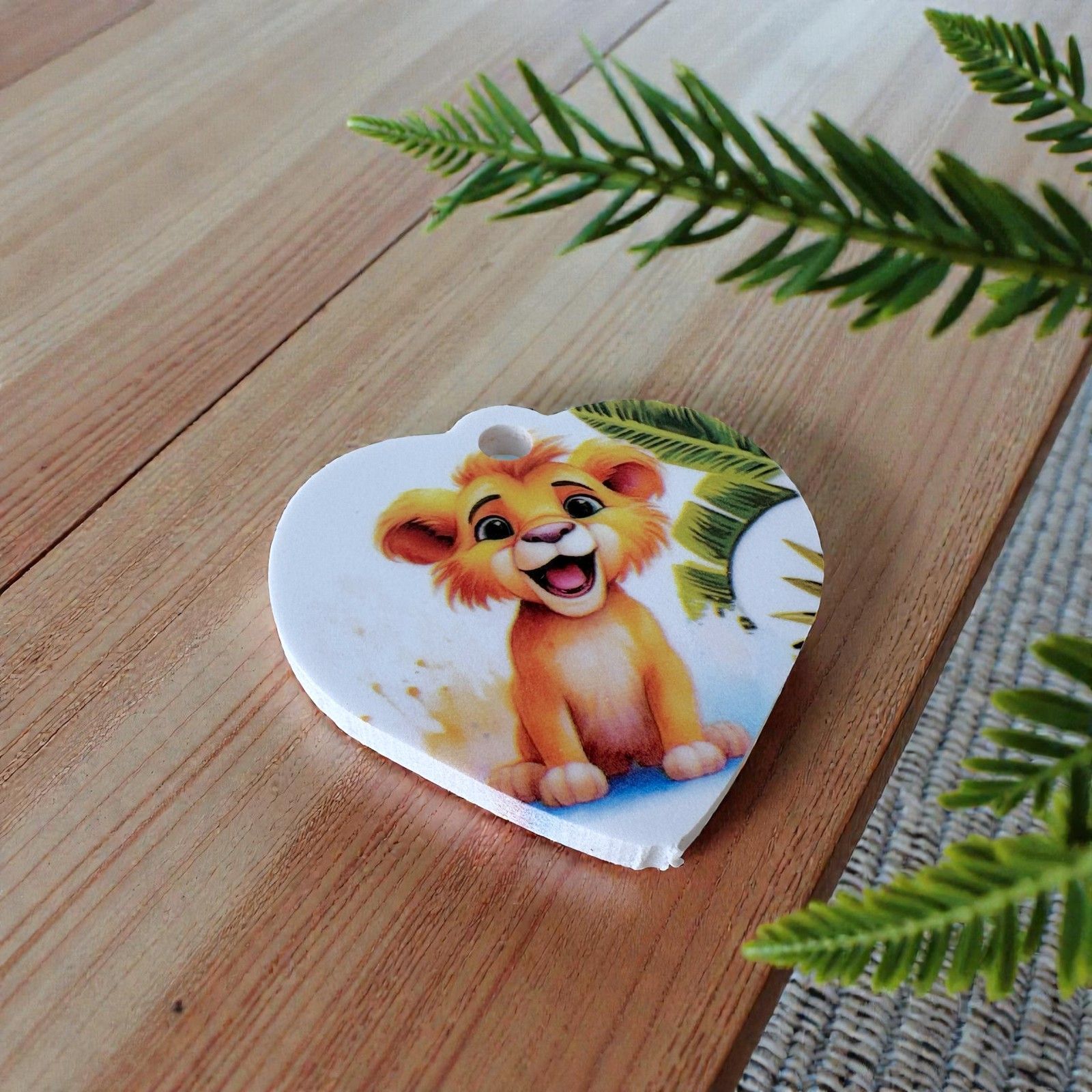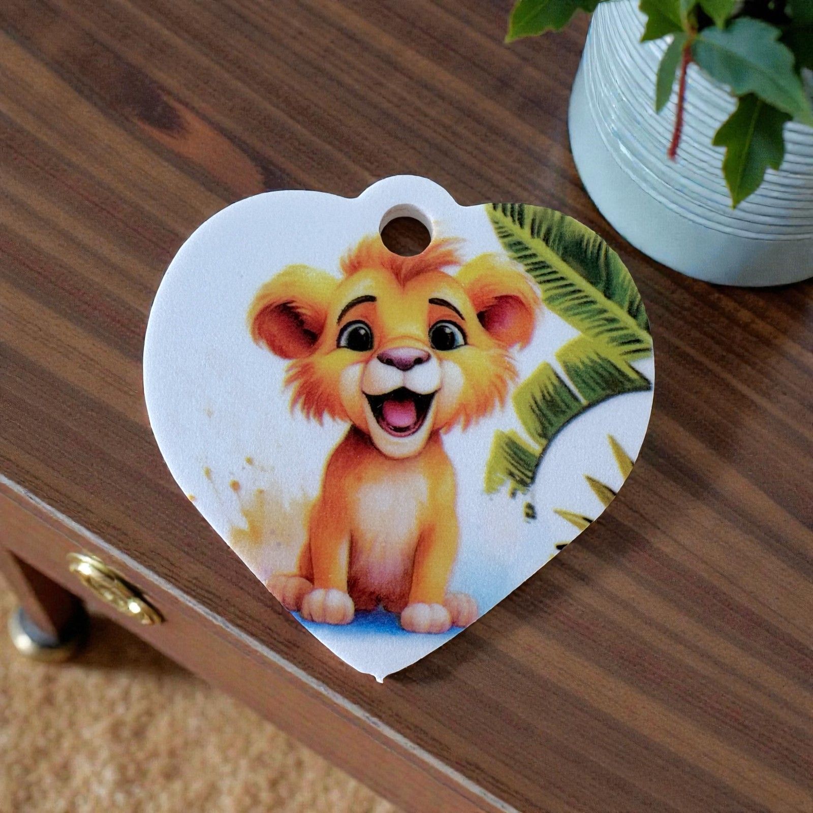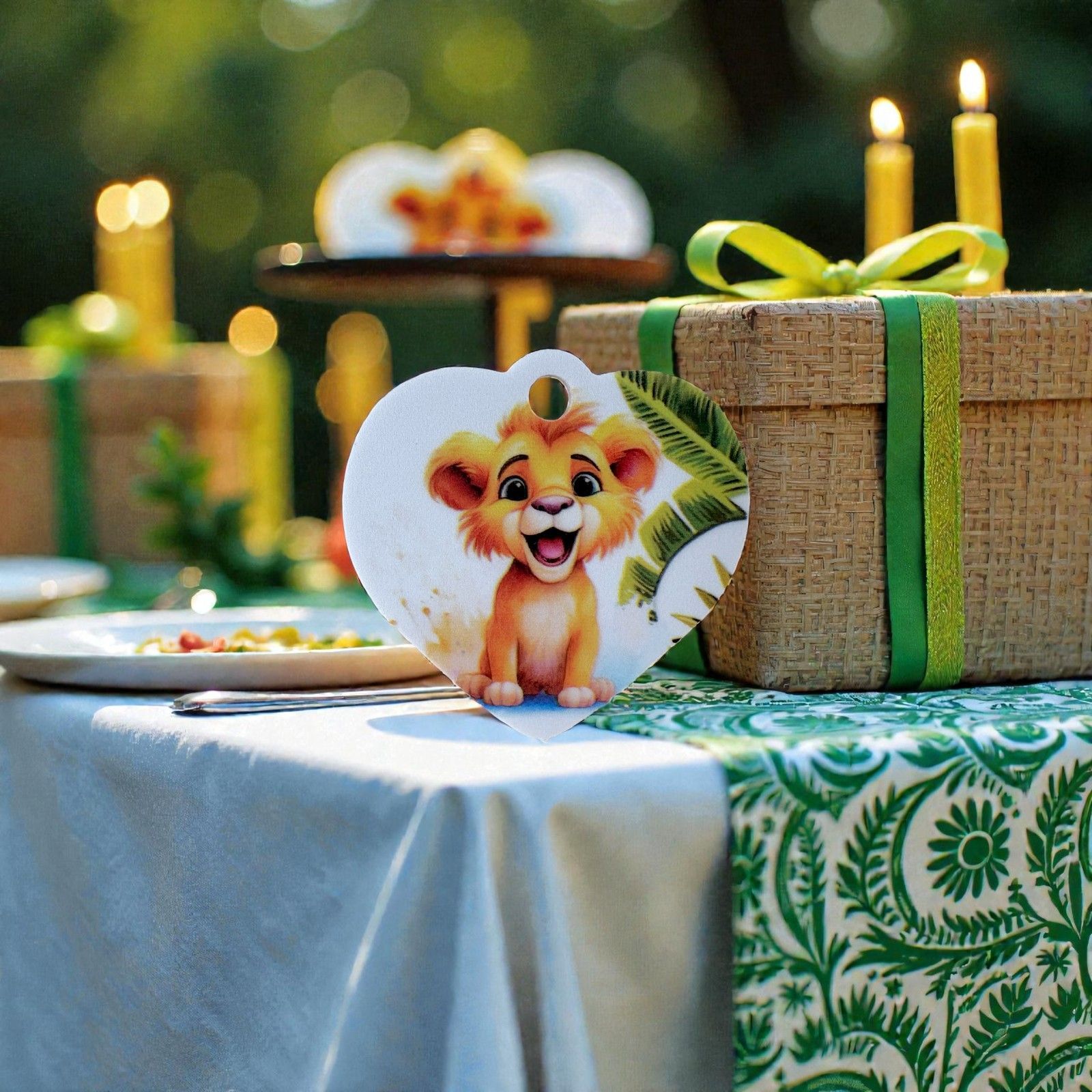 Scopri la magia delle bomboniere battesimo con la nostra adorabile applicazione a forma di cuore, che presenta un simpatico leone circondato da foglie di palma verdi. Questo ciondolo non è solo un semplice oggetto, ma un simbolo di amore e protezione, perfetto per celebrare eventi indimenticabili come battesimi, comunioni e primi compleanni. Ogni volta che i tuoi ospiti lo guarderanno, saranno trasportati in un meraviglioso mondo di gioia e affetto.