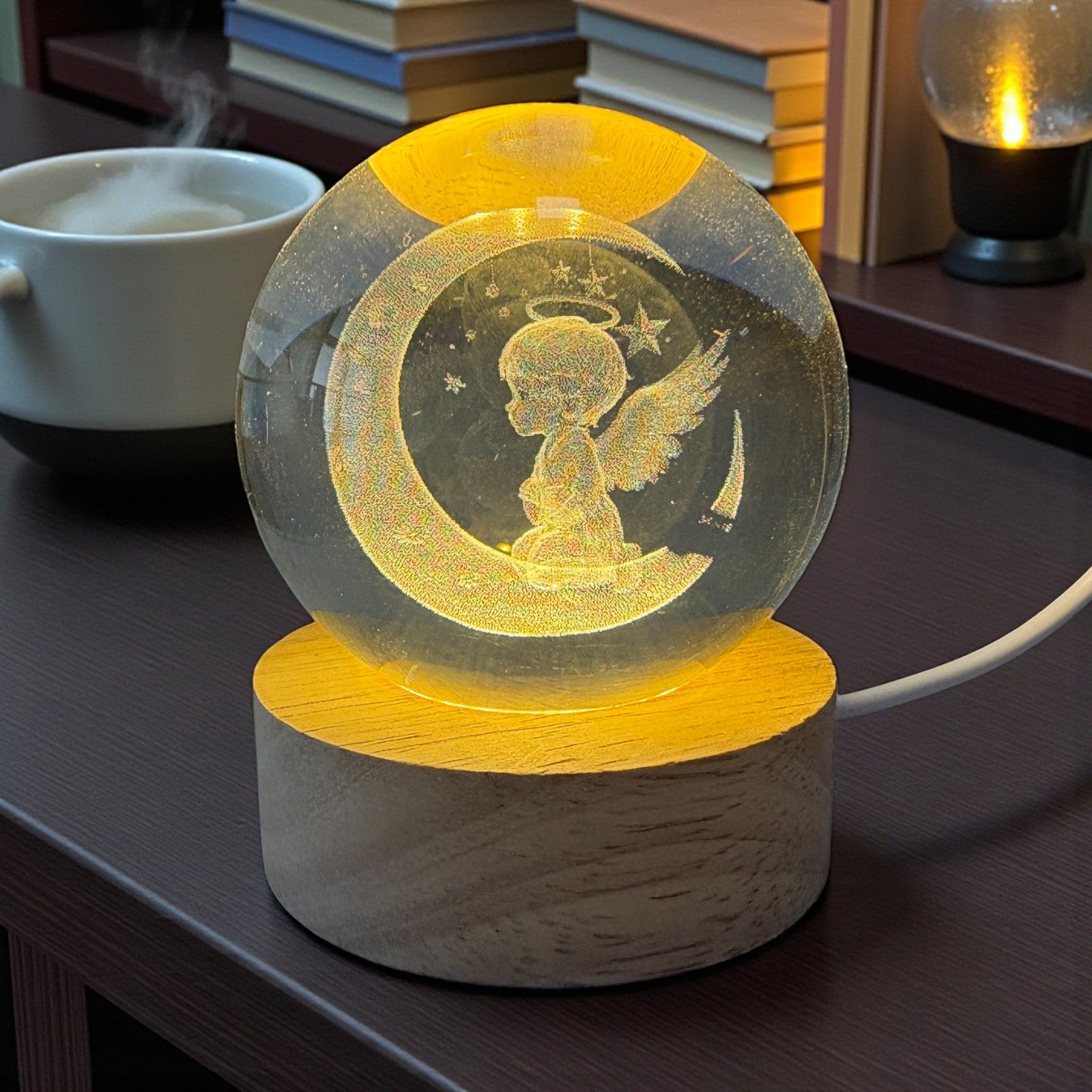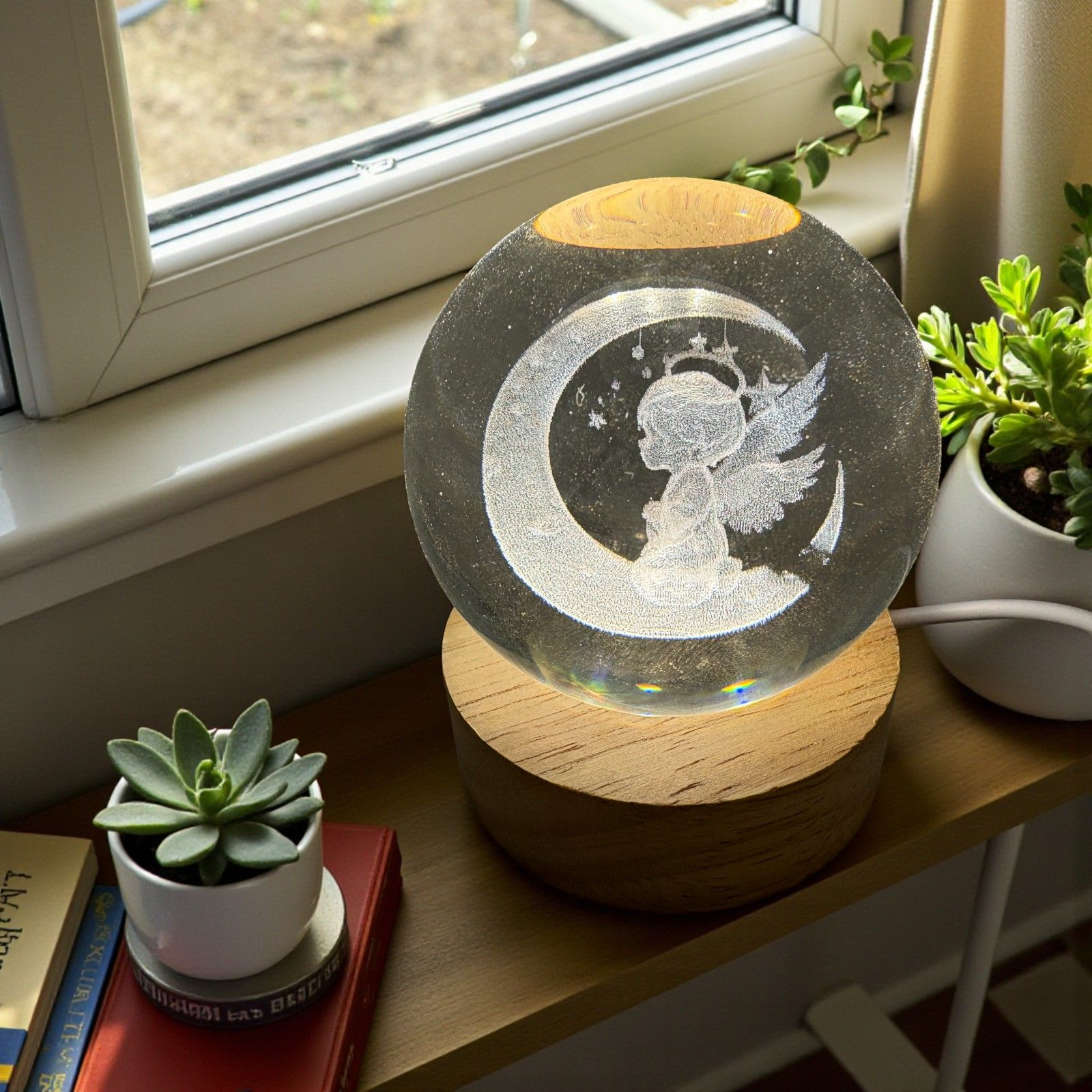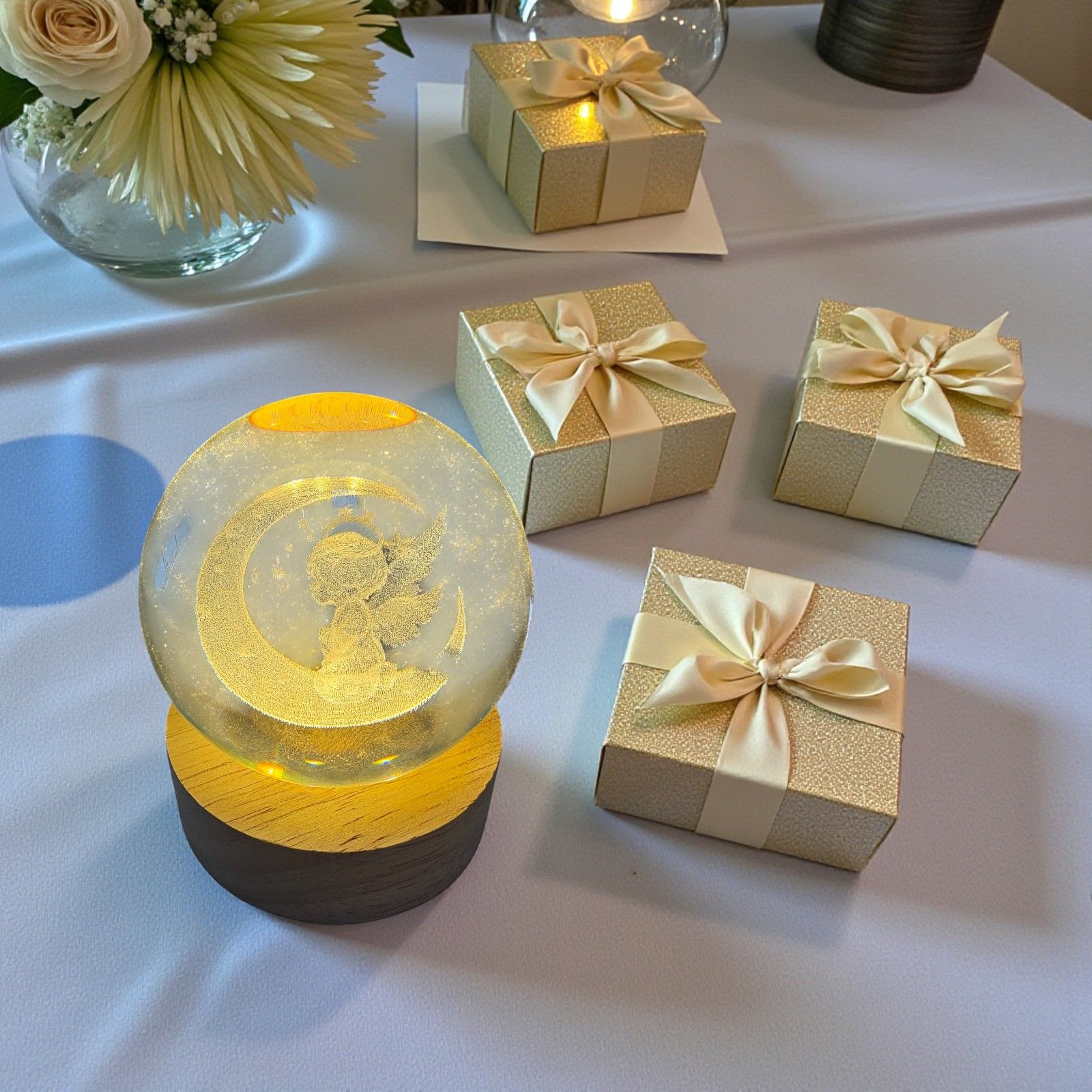 Immergiti in un'atmosfera di dolcezza e serenità con la nostra bomboniera Lampada LED a sfera. Questo incantevole oggetto non è solo una lampada, ma un simbolo di amore e protezione, perfetto per celebrare momenti unici come battesimi, comunioni e cresime. L'immagine di un angioletto circondato dalla luna illumina i sogni e i cuori di grandi e piccini, rendendo ogni evento indimenticabile.