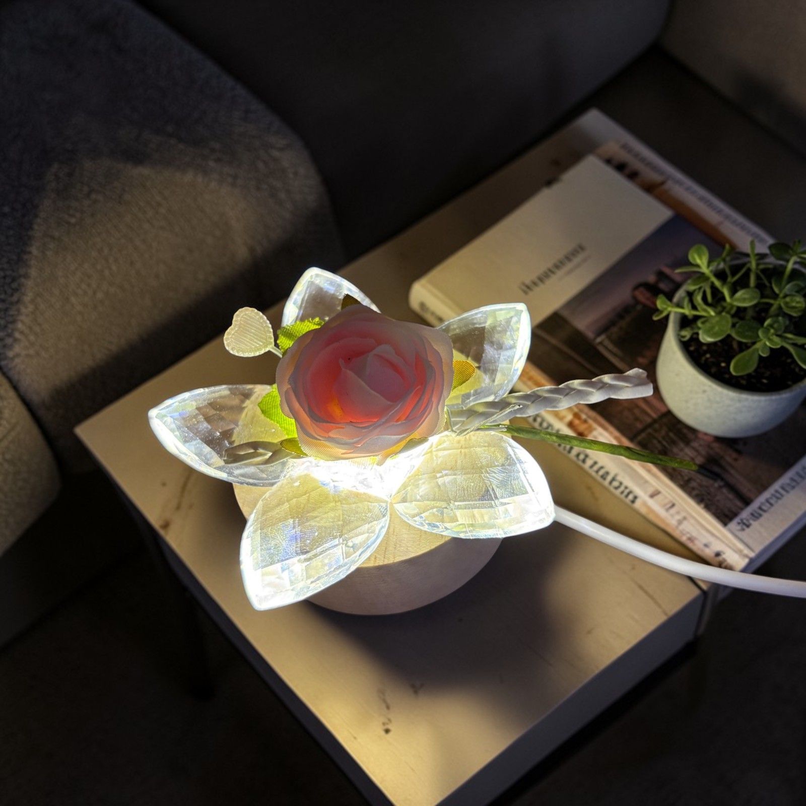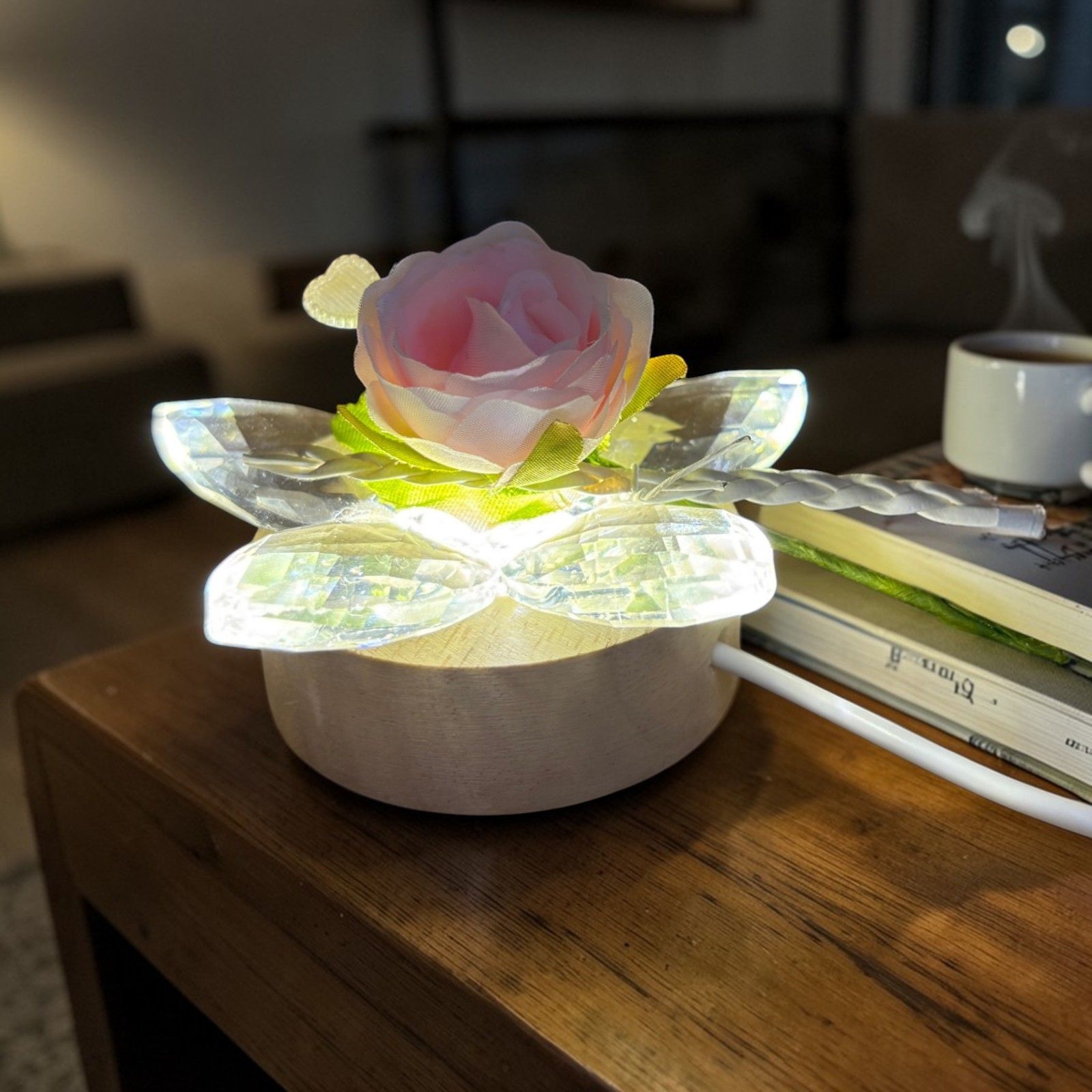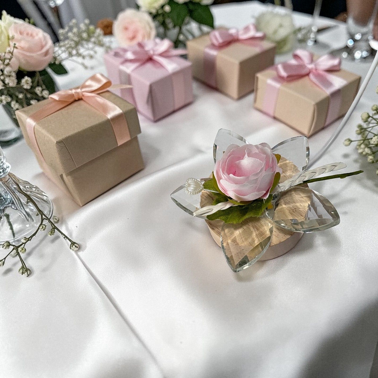 Porta un tocco romantico e luminoso ai tuoi eventi speciali con questa lampada led con fiore in cristallo. Ideale come bomboniera per prima comunione, matrimonio, anniversario o compleanno, la rosa finta con trecciolina e bocciolo rosa regala un dettaglio delicato e raffinato agli invitati.