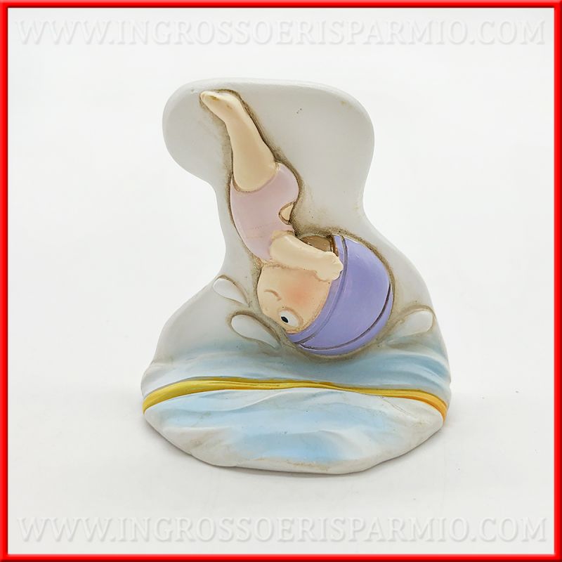 Condividi la tua passione per il nuoto attraverso queste speciali bomboniere, realizzate in resina colorate e raffiguranti una bimba/ragazza nuotatrice mentre si tuffa in acqua.