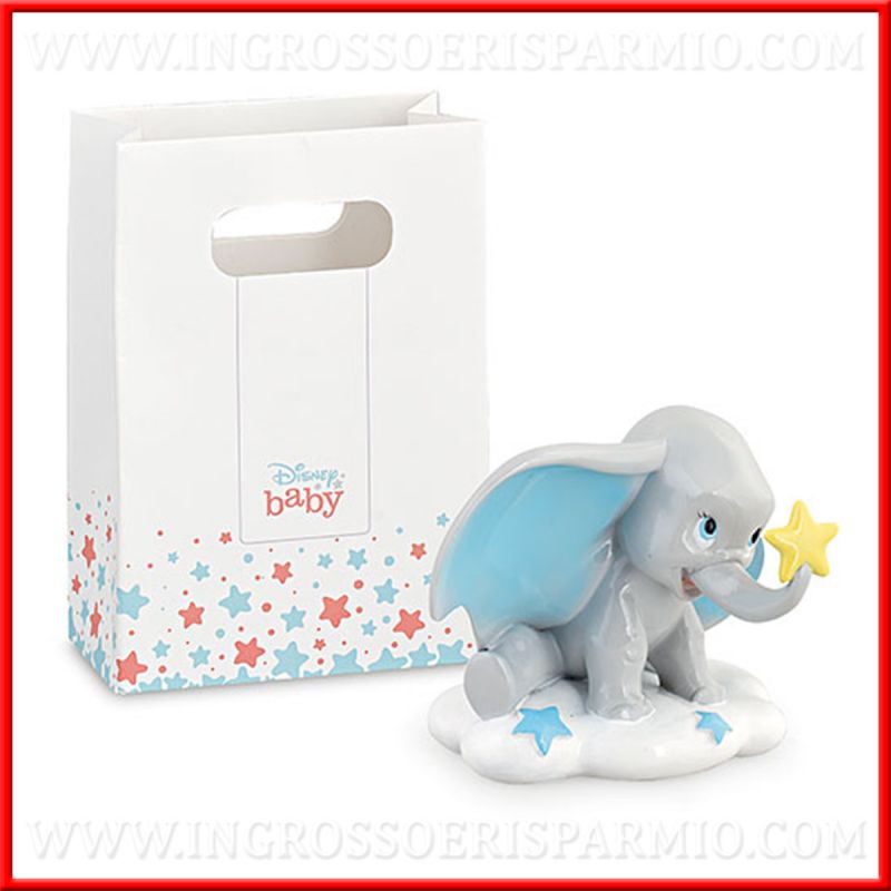 Scegli il meglio nel nostro catalogo bomboniere Disney e richiedi e statuette Dumbo complete di confezione realizzata con sacchettino e confetti!