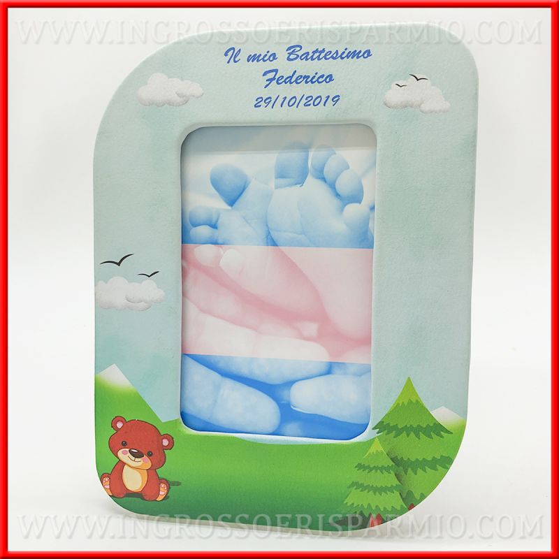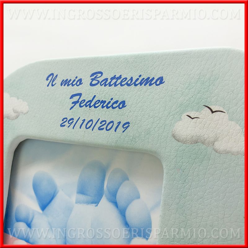 Cornici battesimo PERSONALIZZABILI: con un piccolo supplemento, potrai rendere uniche queste bomboniere per battesimo, richiedendo la stampa di nome, data ed evento (come in foto).