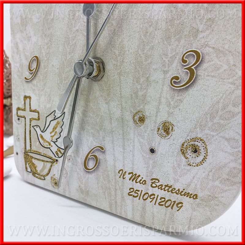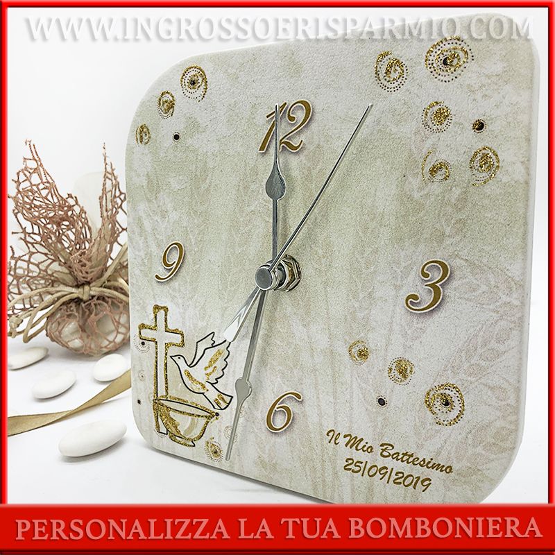 I colori neutri, permettono di utilizzare gli orologi sia come bomboniere battesimo bambina che come bomboniere battesimo bimbo.